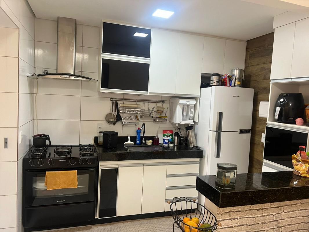 - cozinha ampla com bancada em granito e rica em armários, e coifa.