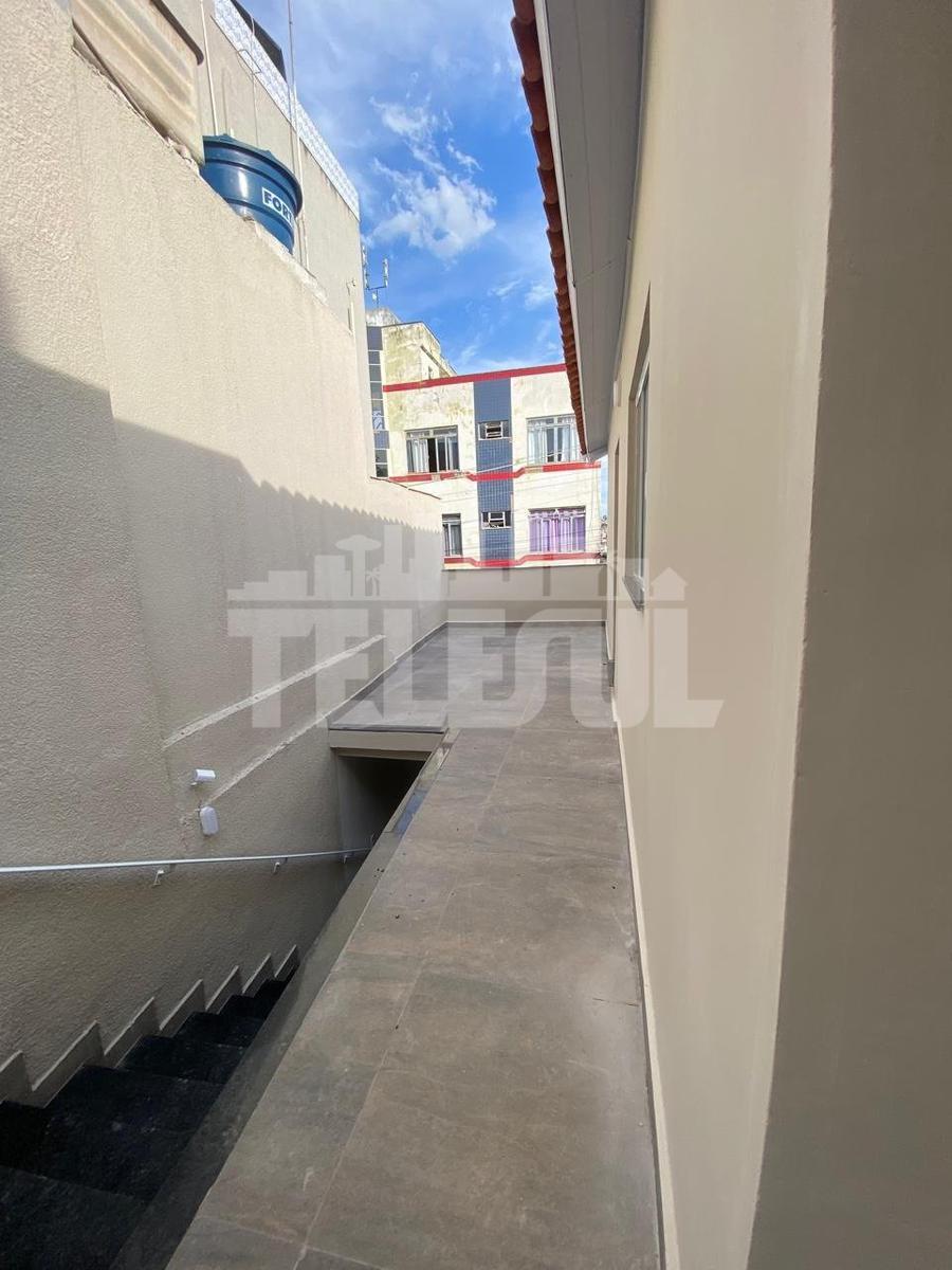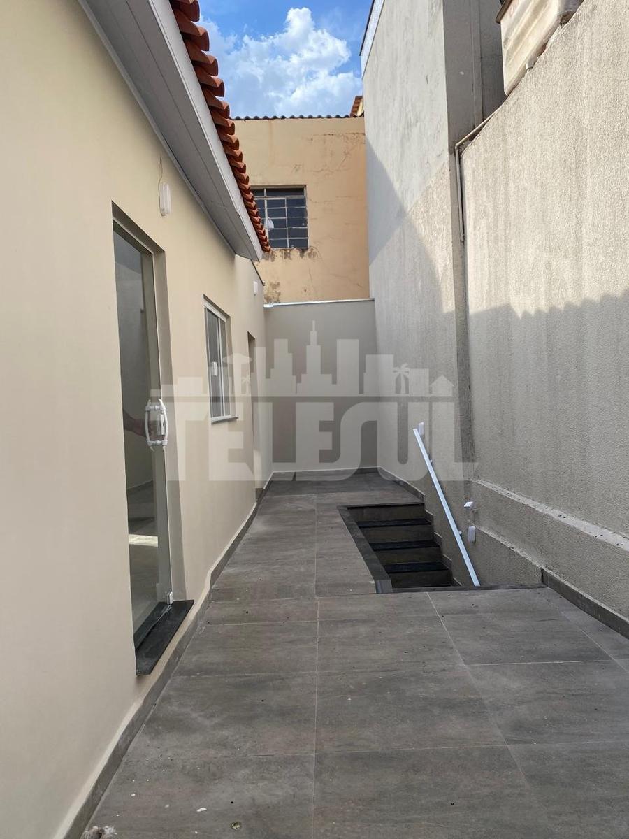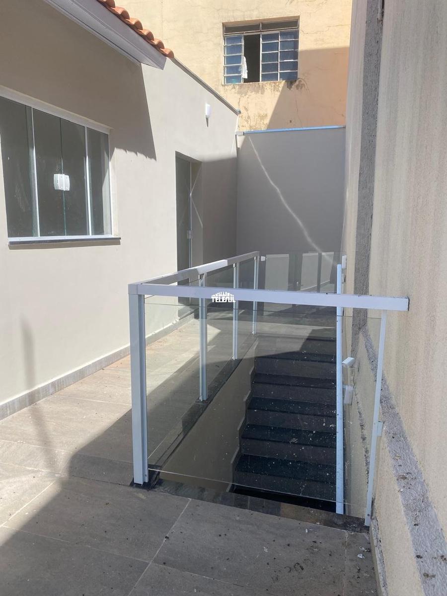 Casa com dois quartos sendo uma suíte com closet, banheiro com box de vidro, e pia de mármore. Quarto e banheiro social também com box e pia de mármore. Sala de estar, cozinha grande com pia de granito preta, lavanderia e quintal, varanda, com espaço para fazer área gourmet, garagem coberta para um carro, parte debaixo com salão amplo para escritório ou depósito.