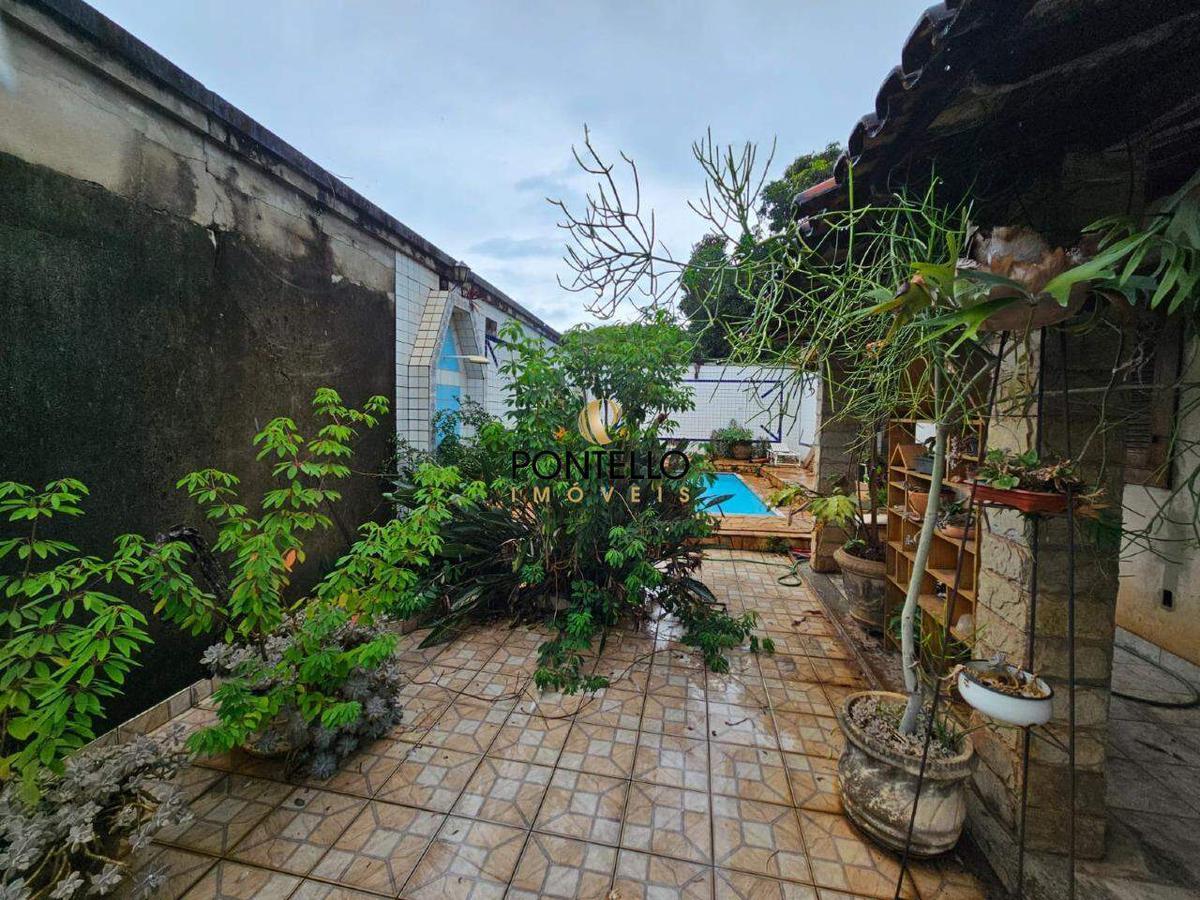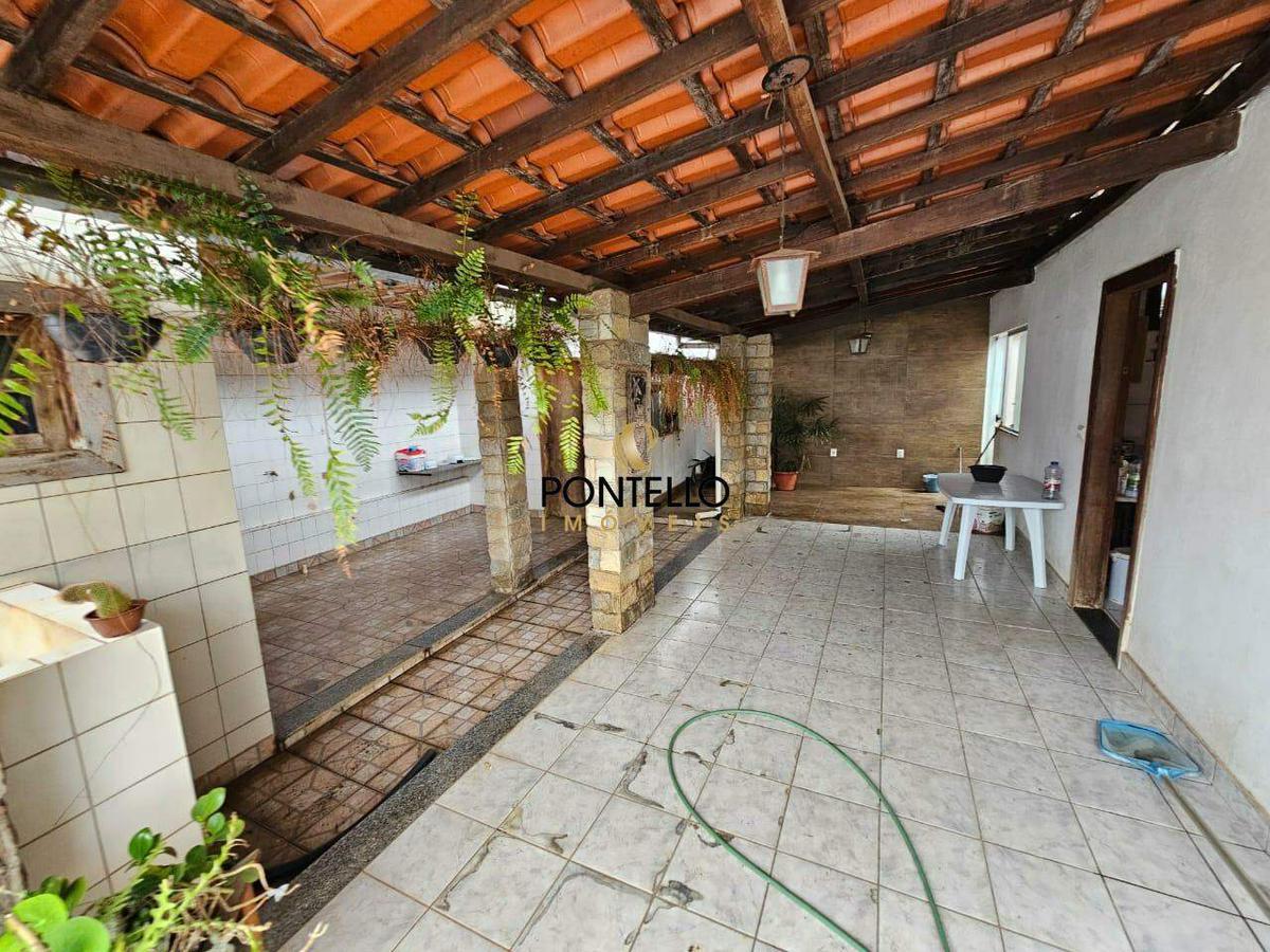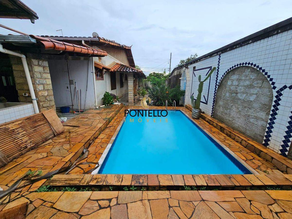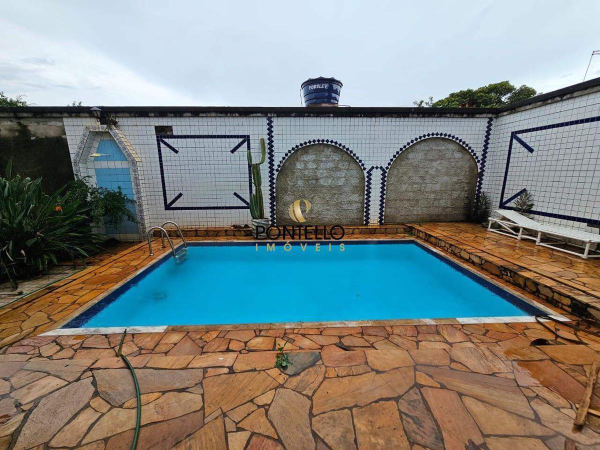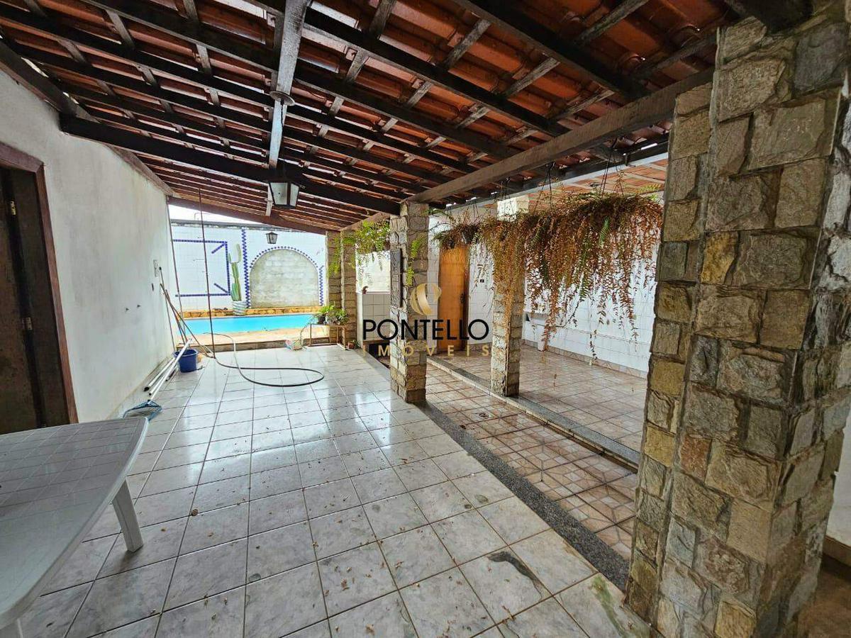 Casa de 3 quartos sendo 1 suíte, banheiro social, sala de estar, sala de tv, cozinha, área de serviço, 3 varandas, cômodo de despejo, banheiro externo, piscina, pequeno quintal e 2 vagas de garagem