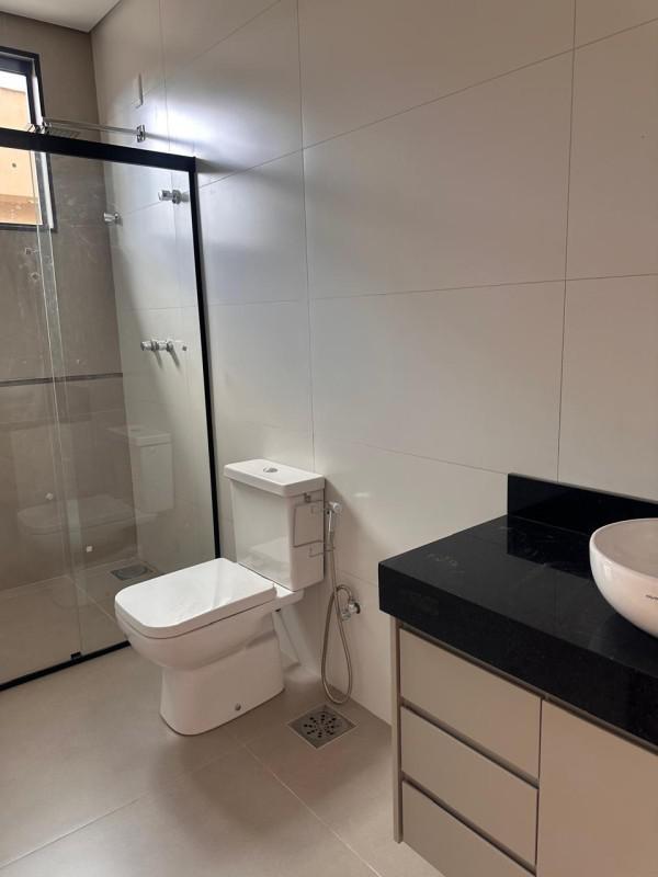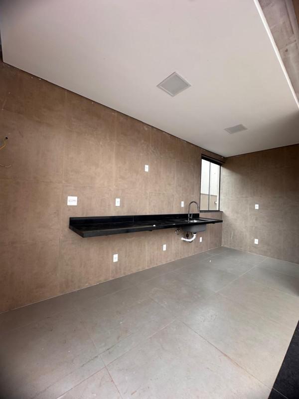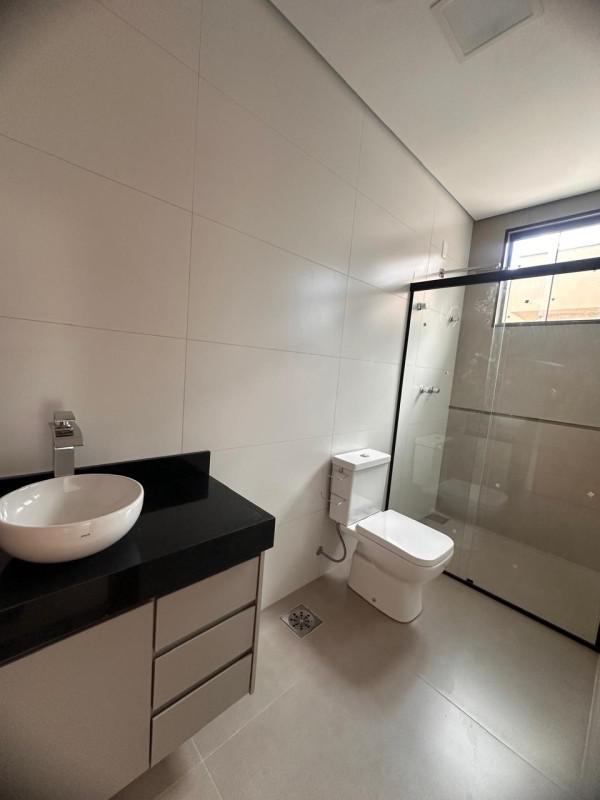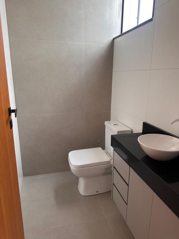 Casa entregue finalizada com piscina, armários planejados na cozinha e banheiros.