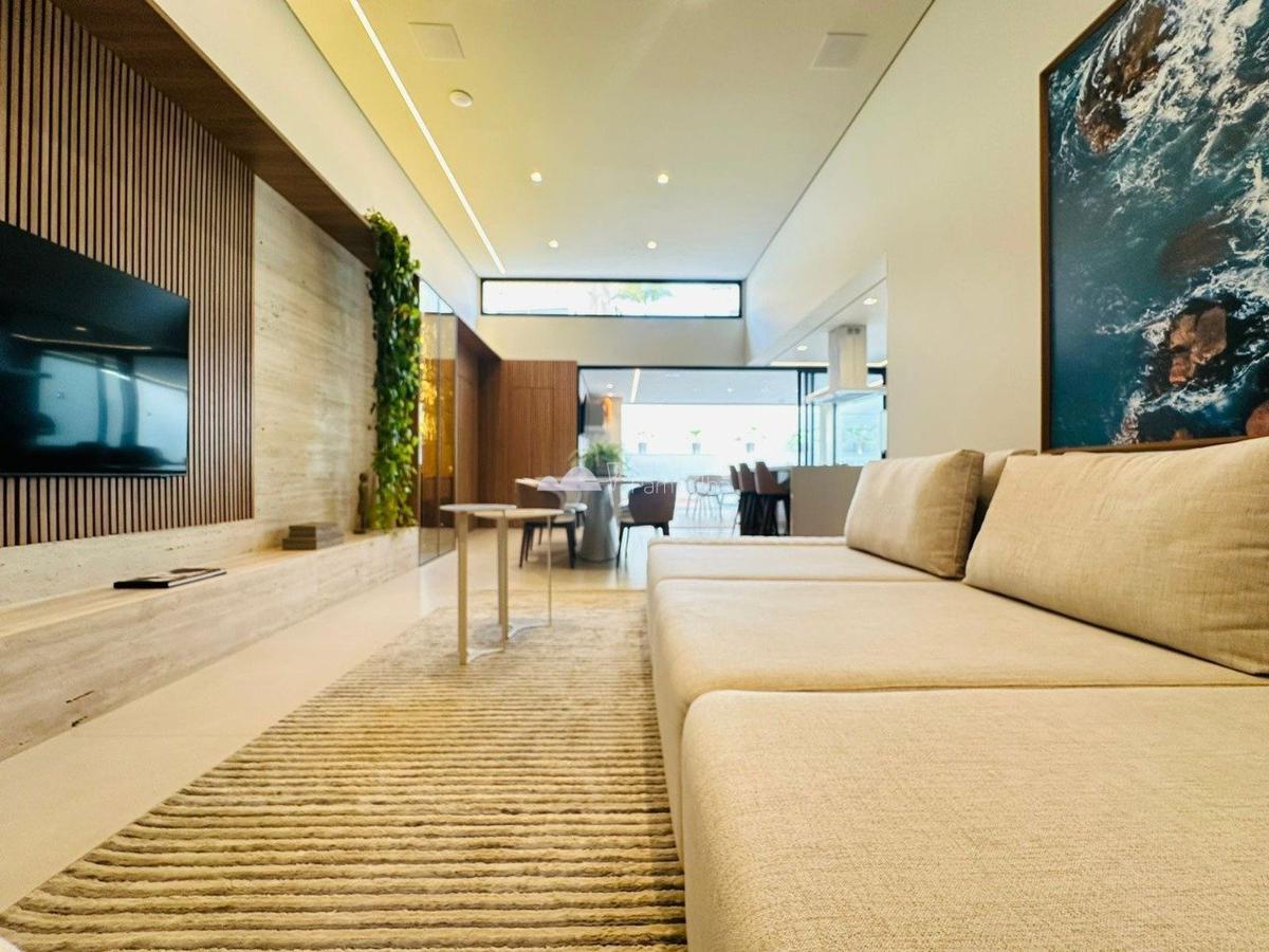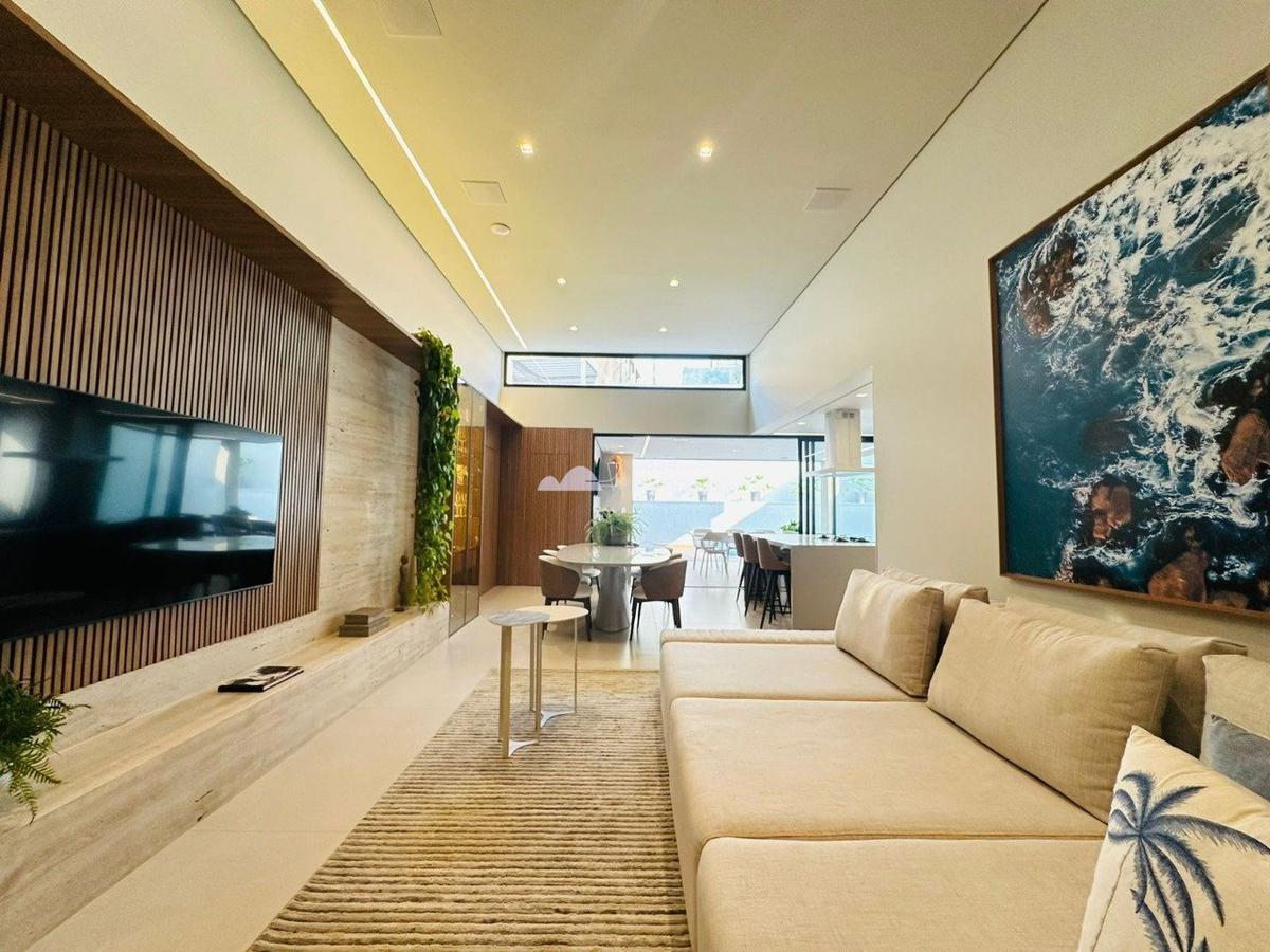 -excelente sala conjugada para 2 ambientes com pé direito duplo, cortinas e som automatizados, painel ripado
