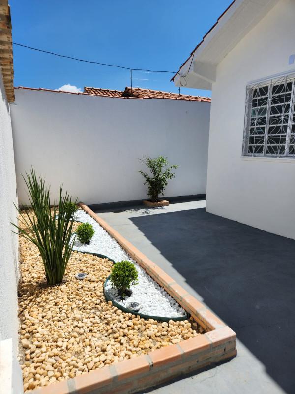 O imóvel conta ainda com quintal amplo, plano e gramado, oferecendo diversas possibilidades de uso. Há também banheiro externo e área de serviço estrategicamente localizada.