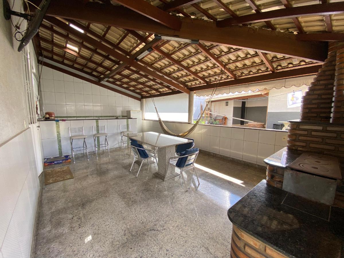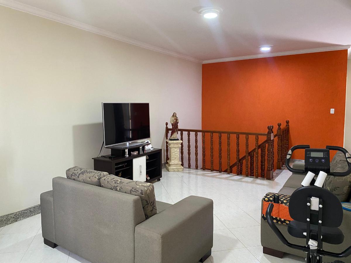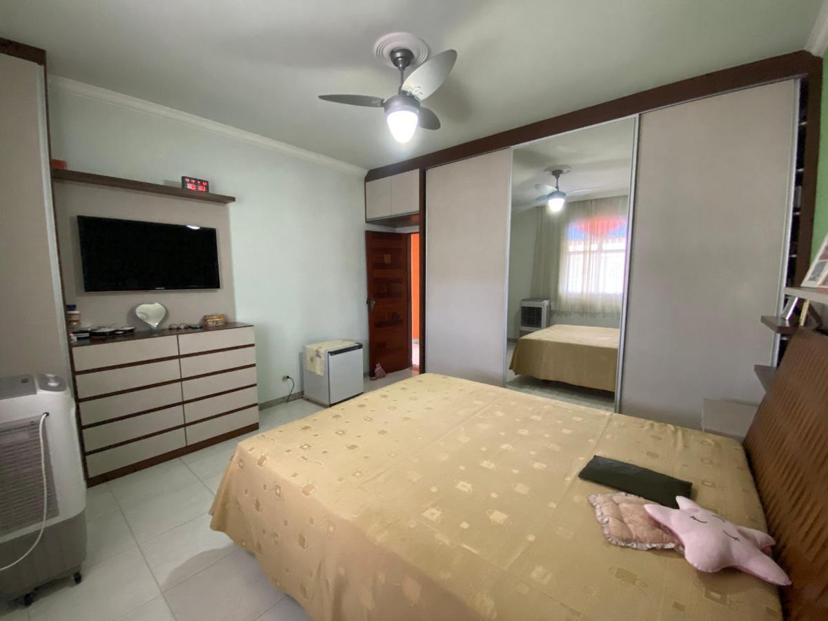 Sala de TV com varanda, 3 quartos com ar-condicionado (1 suíte com armários). Banhos com aquecimento solar.