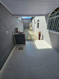 Casa com 3 quartos, sala, cozinha, banheiro social, área de serviço e garagem descoberta para 2 carros.