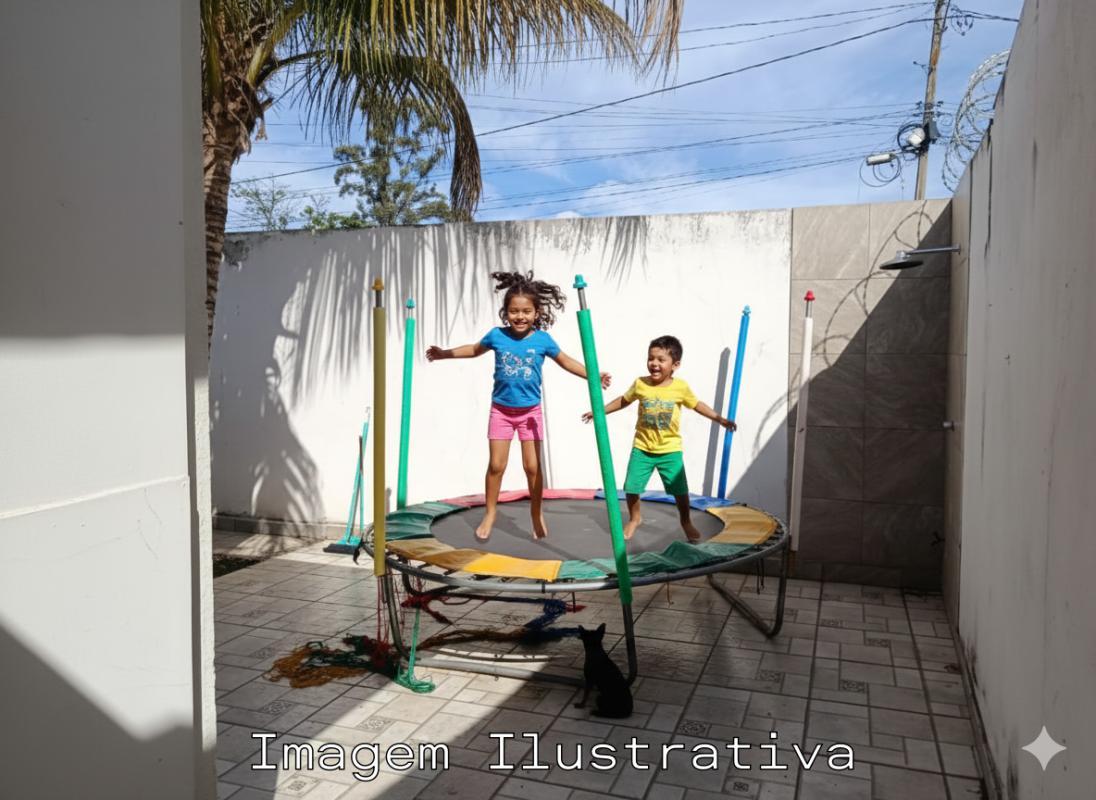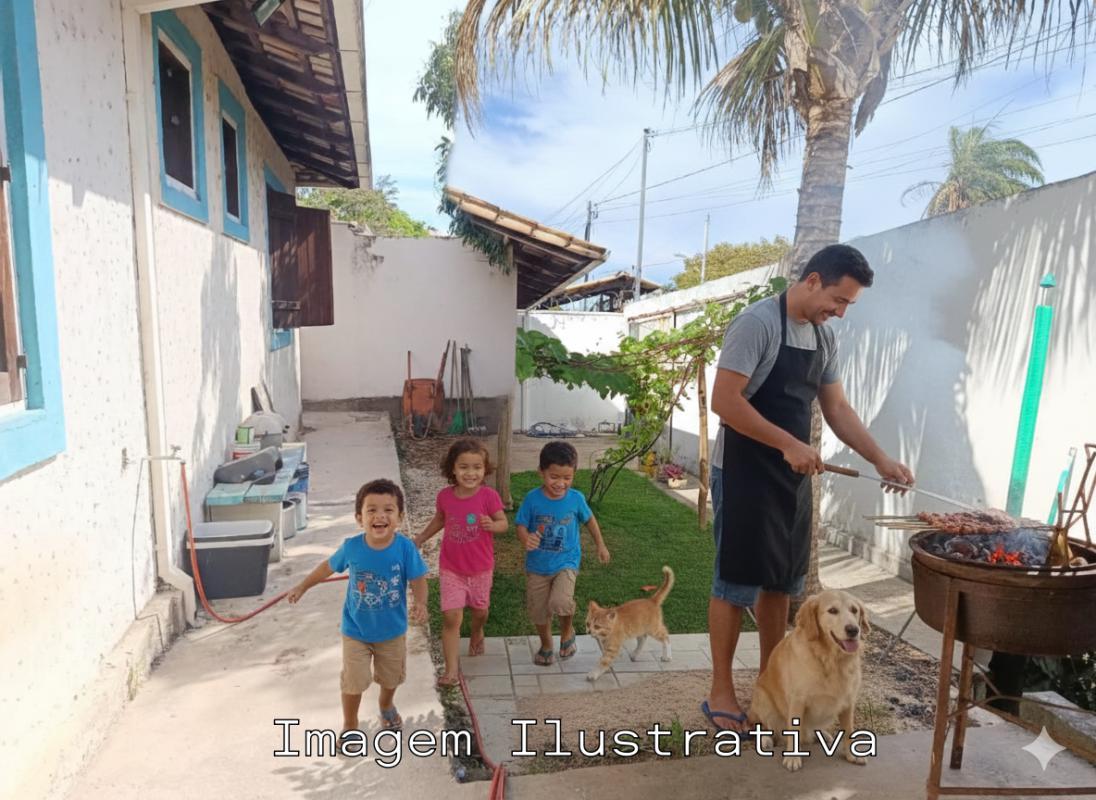 A residência conta com três quartos, sendo um deles suíte, oferecendo excelente espaço interno e conforto para a família. A área externa ampla permite diferentes possibilidades de aproveitamento do terreno.
