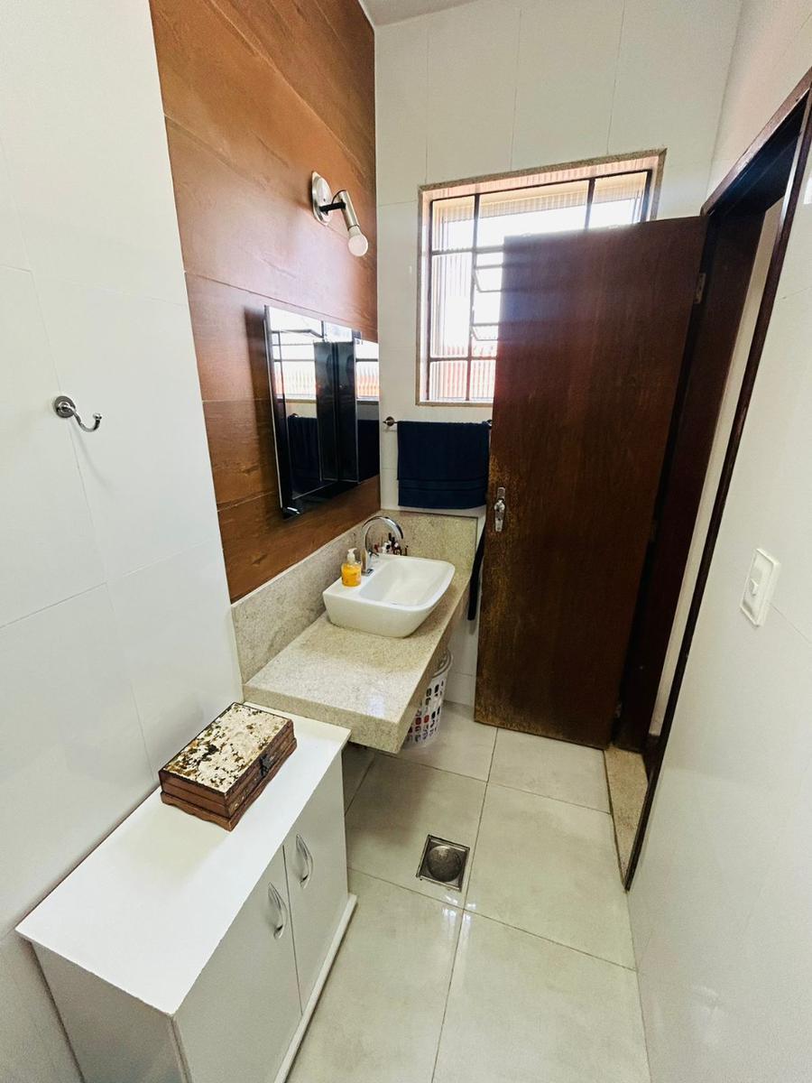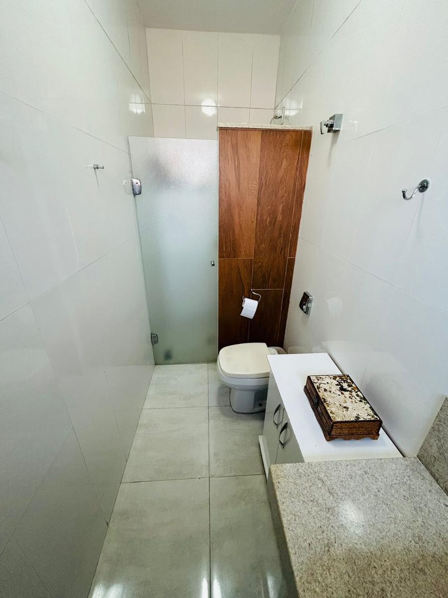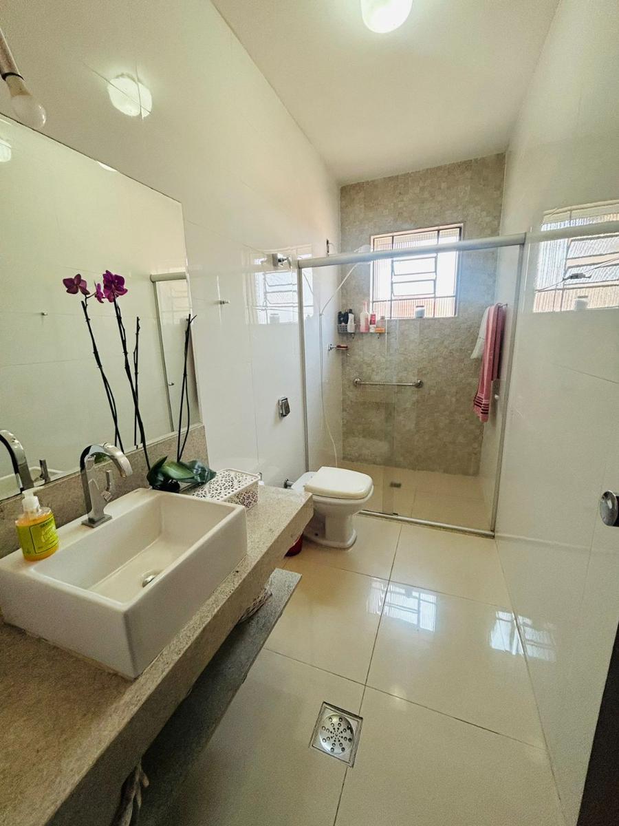 Sala e jantar, sala de visita, cozinha com armários, área de serviço e banheiro social com box em vidro temperado, garagem para quatro veículos e jardim. No segundo nível, temos mais uma sala, dependência completa e empregada, lavanderia, quarto de despejo, confortável piscina e churrasqueira.