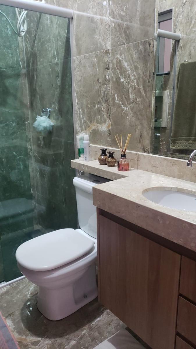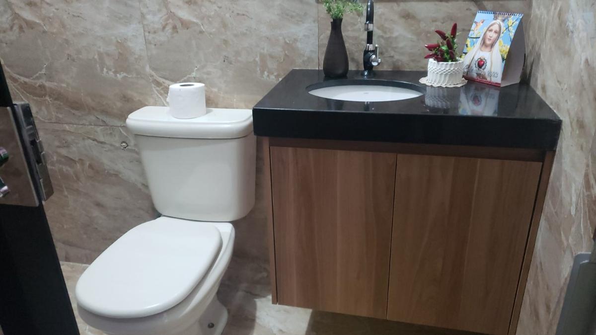 Primeiro pavimento: Sala ampla para dois ambientes. Lavabo. Cozinha americana planejada com Cooktop e armários embutidos. área de serviço ampla. Garagem para dois carros. Segundo pavimento: 03 quartos amplos, sendo um com armários embutidos e prateleiras. Banheiro com box em blindex. Varanda ampla com vista panoromica do bairro.