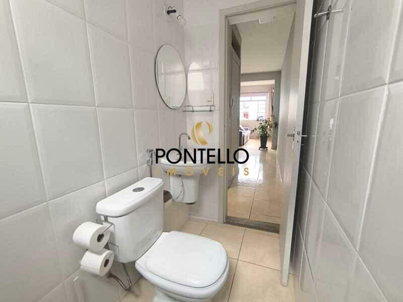 Banho social com piso em porcelanato e revestimentos em cerâmica;