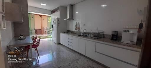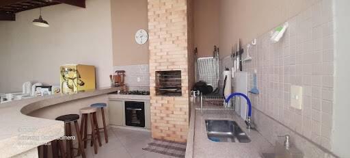 Grande área gourmet integrada à sala de jantar e sala de estar, ideal para receber amigos e familiares com churrasqueira, bancada e espaço de convivência;