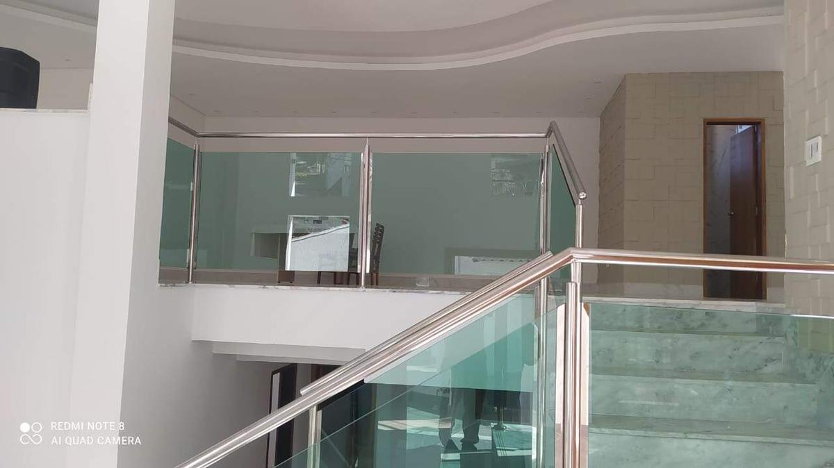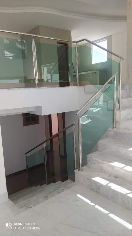 Excelente casa com 230m2 construídos em 2 pavimentos, fino acabamento, terreno de 500m2, sendo o 1º pavimento Nível da rua Sala ampla, para vários ambientes, com acabamento de luxo, piso em porcelanato, projeto de iluminação, rebaixamento em gesso, parte da sala com pé direito duplo, uma cozinha de apoio em conceito aberto, com bancadas em granito e lavabo decorado de muito bom gosto. ;
