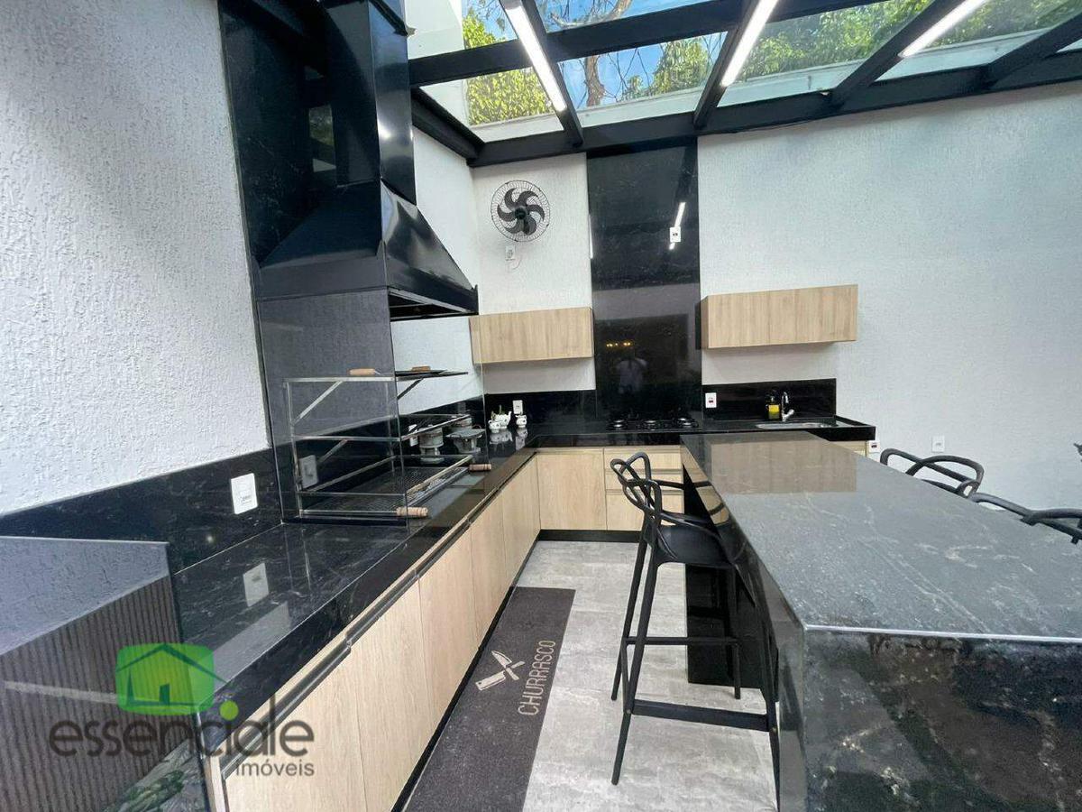 O imóvel conta ainda com banho social e lavabo com espelhos e armários planejados, sala de TV com painel embutido e área de serviço com armários. O espaço gourmet é completo, com churrasqueira, bancadas em granito, armários planejados e um deck com SPA para seis pessoas, perfeito para momentos de lazer e confraternização.