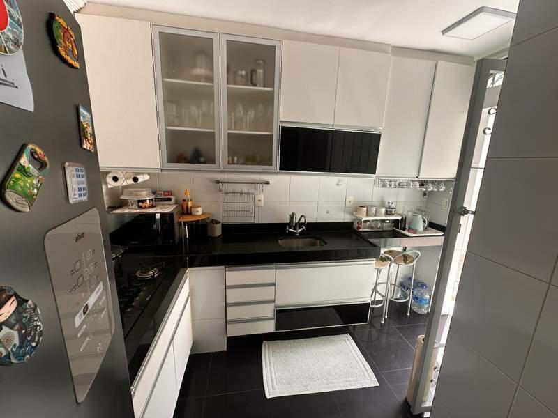 3 quartos amplos, todos com piso em porcelanato, armários, sendo uma suíte com closet, bancada em granito, espelho e box em blindex