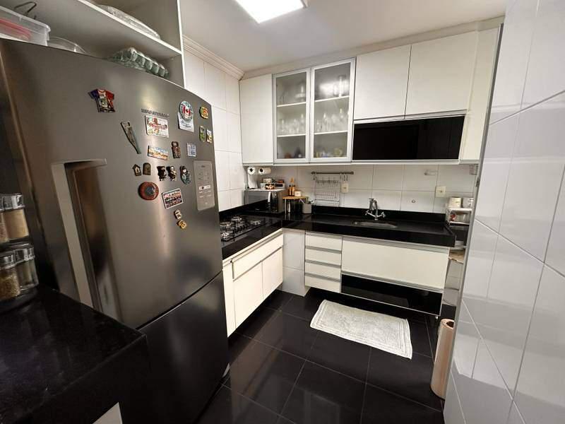 Cozinha espaçosa com bancada e piso em granito e armários planejados
