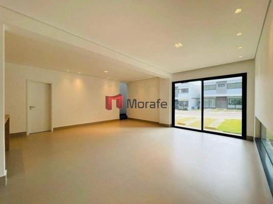 Suíte Master, com closet espaçoso e uma vista privilegiada para a rua principal do condomínio.