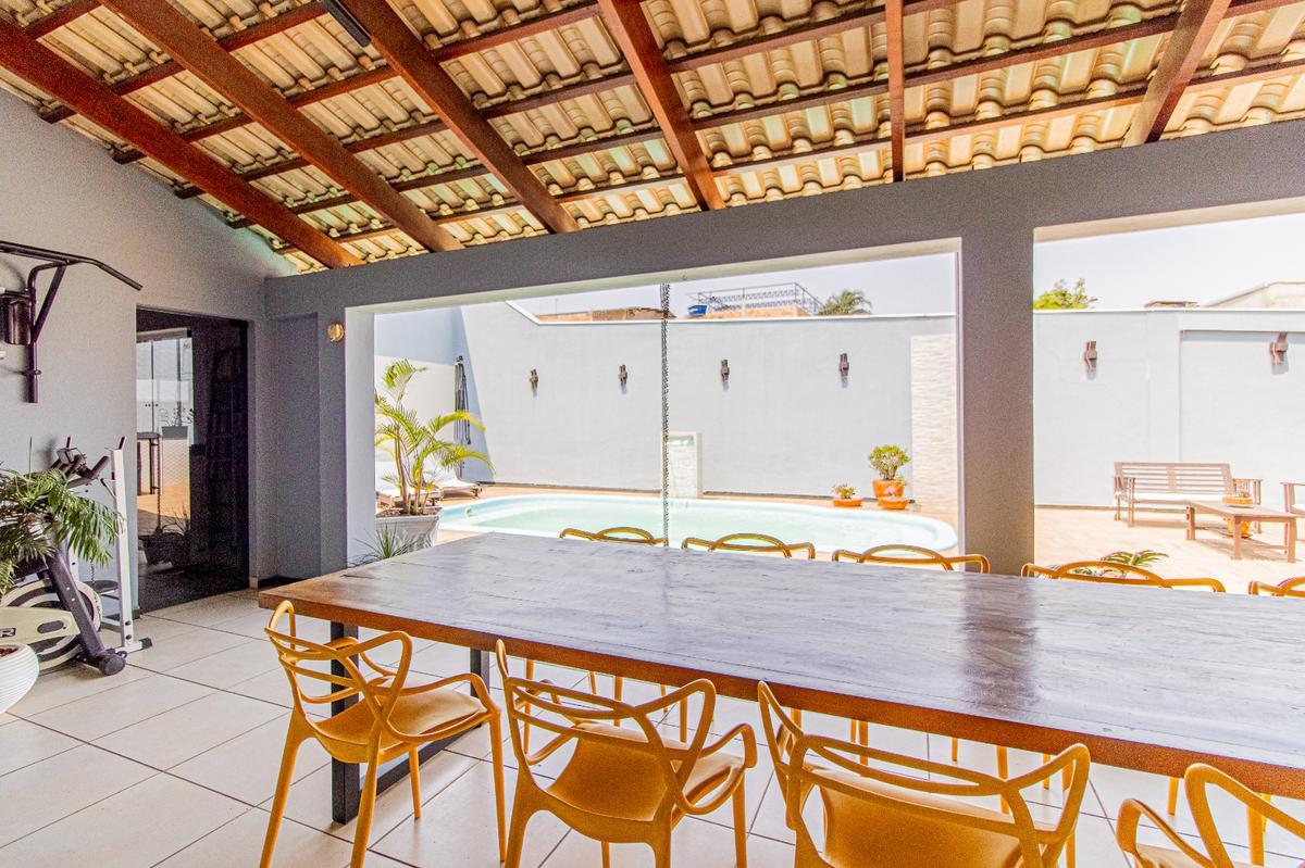 A área externa é um verdadeiro paraíso, com um espaço gourmet completo, piscina aquecida, churrasqueira, pia com bancada em granito e armários, lavabo e área de serviço com amplo armário planejado. A garagem espaçosa oferece espaço para até 10 vagas, sendo 4 cobertas e 6 descobertas. Todos os banheiros possuem água aquecida através de aquecedor solar, proporcionando conforto e economia para sua família.