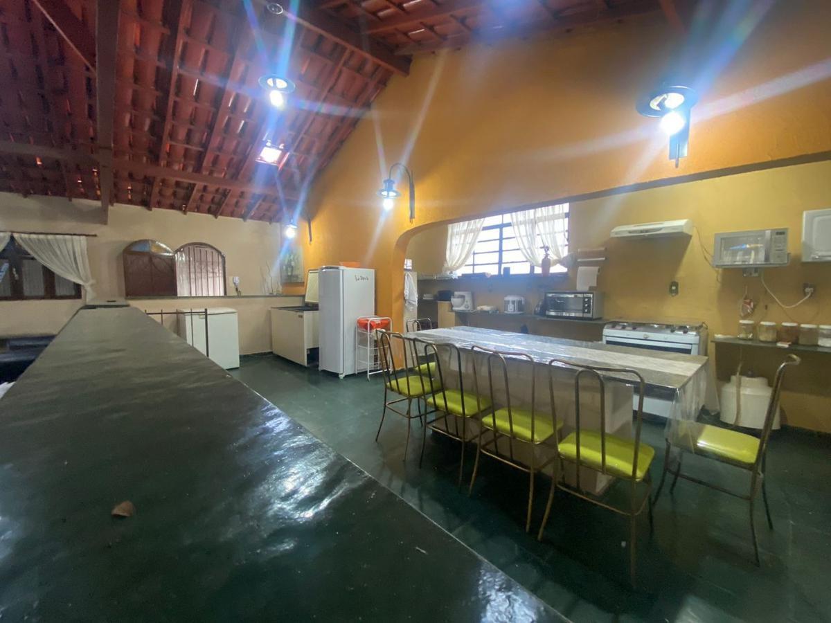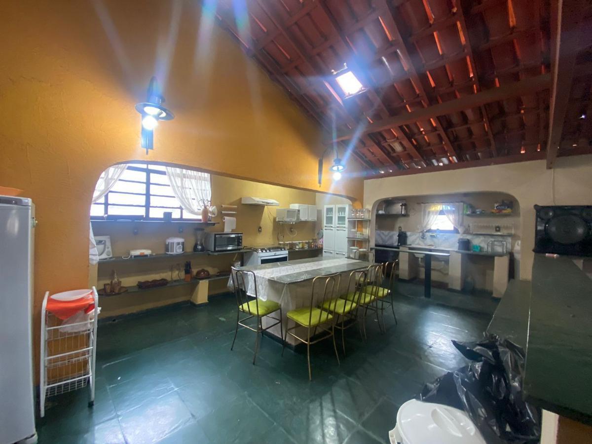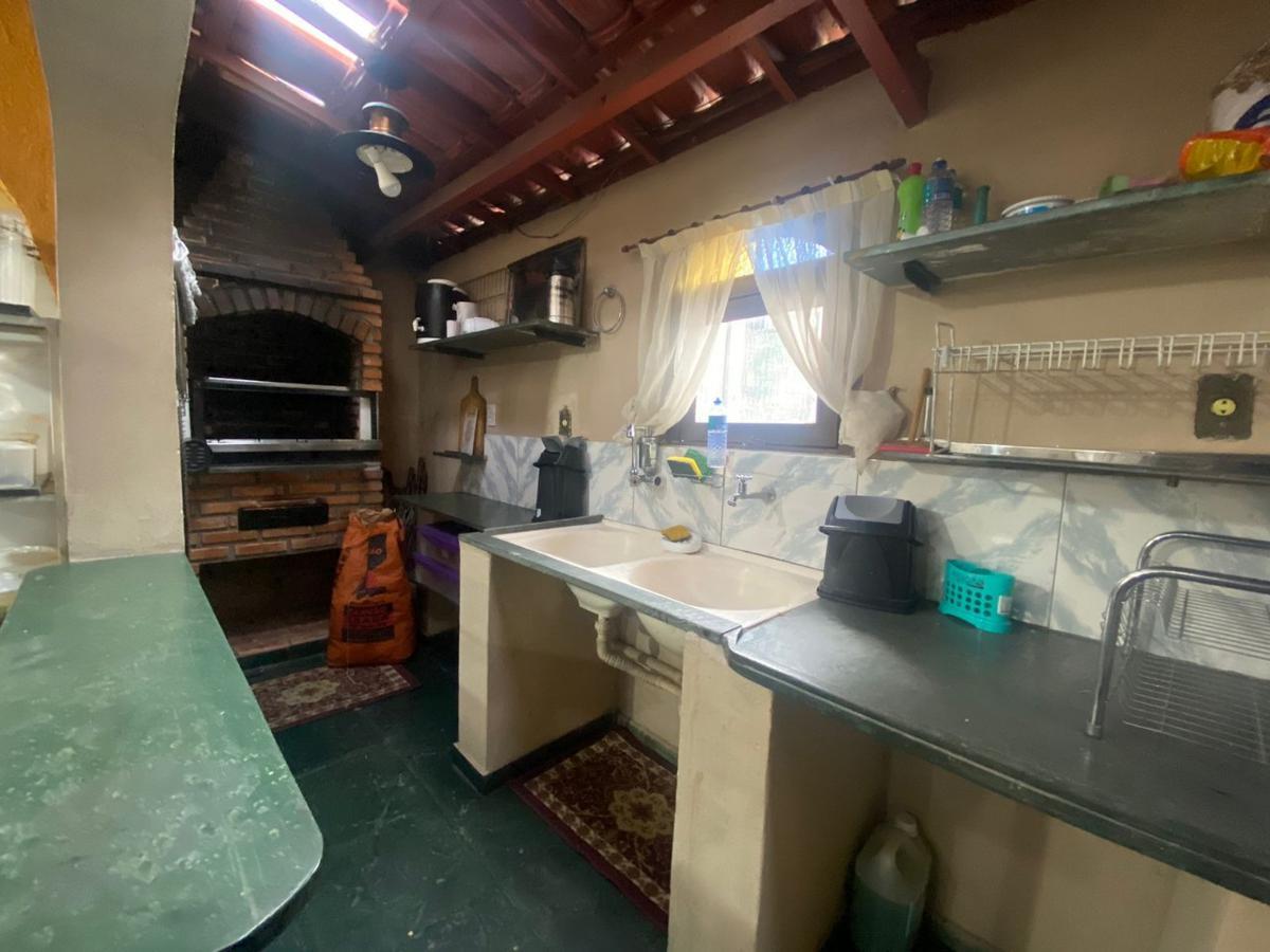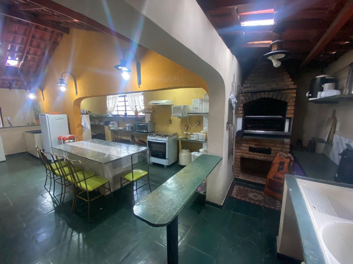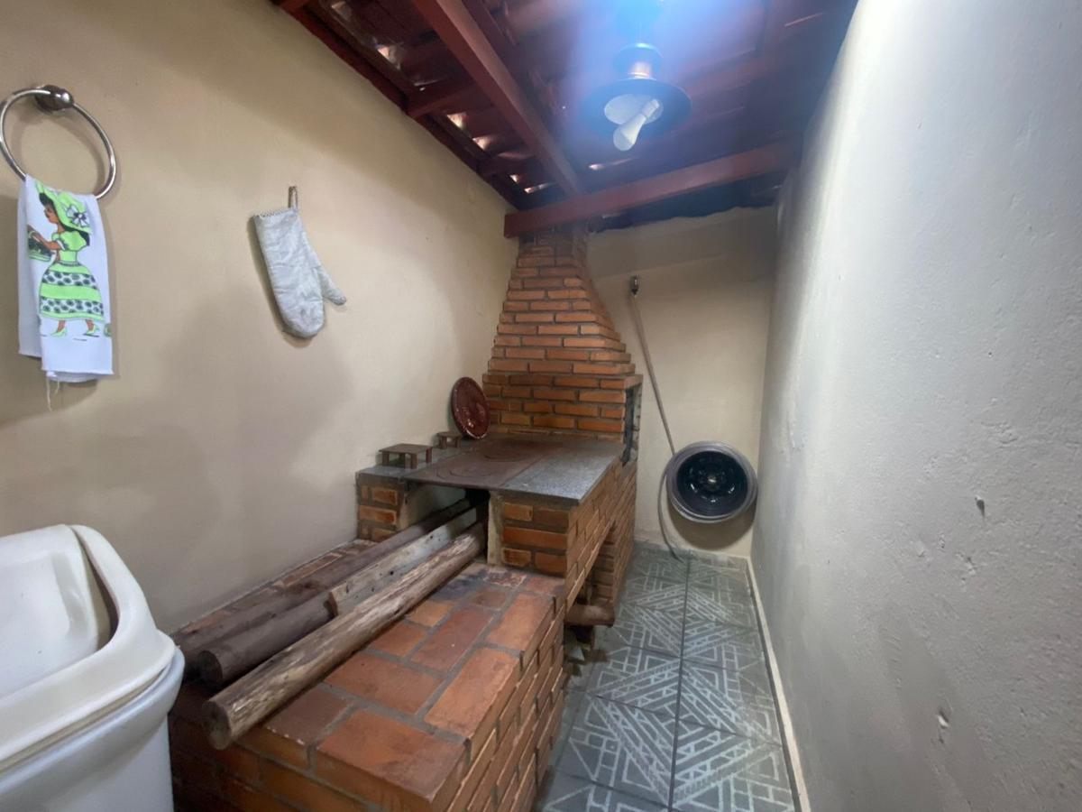 Espaço gourmet com churrasqueira e fogão a lenha.