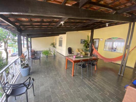 A casa principal possui 3 quartos com armários, 2 banheiros com box blindex e armários planejados, sala de estar, copa espaçosa, cozinha ampla e varanda coberta.