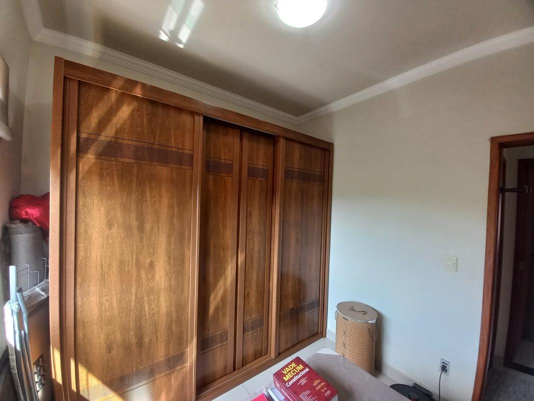 ¿ Um quarto com armário planejado e persiana romana.
