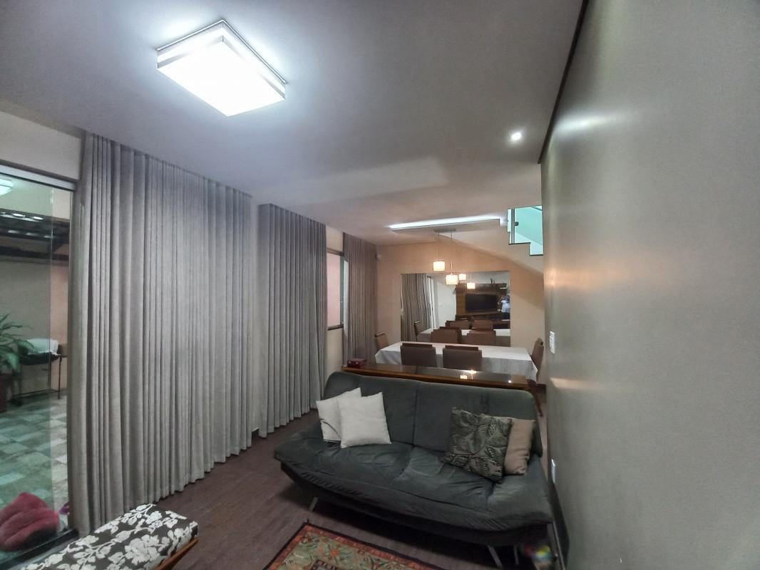 ¿ Sala ampla integrada à copa, decorada com sofisticada cortina de linho e teto rebaixado em gesso.