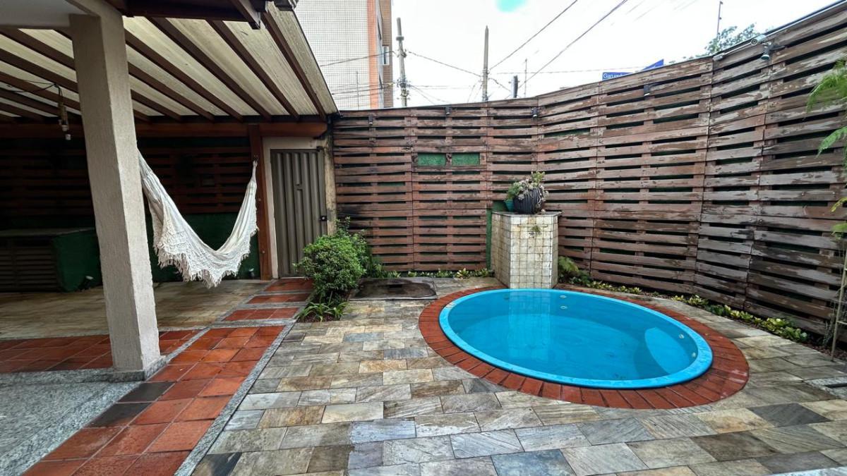 - 1º pavimento: Varanda de acesso coberta, área gourmet, piscina aquecida com cascata e garagem ampla. Sala para 02 ambientes, lavabo, cozinha com armários e área de serviço
