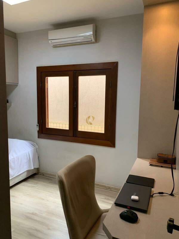 Casa com 3 quartos sendo 1 suíte, sala, copa, cozinha, 2 banheiros sociais, área gourmet com churrasqueira e sauna, área de serviço, varanda, garagem para dois carros. Armários nos quartos e cozinha.