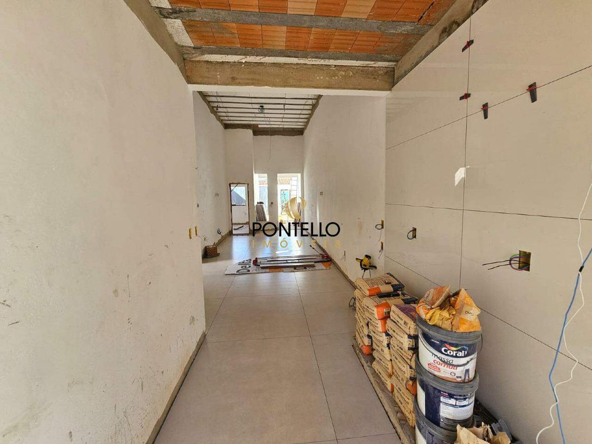 Casa com 3 quartos sendo 1 suíte master com closet amplo, sala com pé direito alto para 2 ambientes, cozinha ampla, banheiro social, área de serviço, garagem para 2 carros, jardim, varanda com área gourmet e churrasqueira, excelente imóvel, novo.