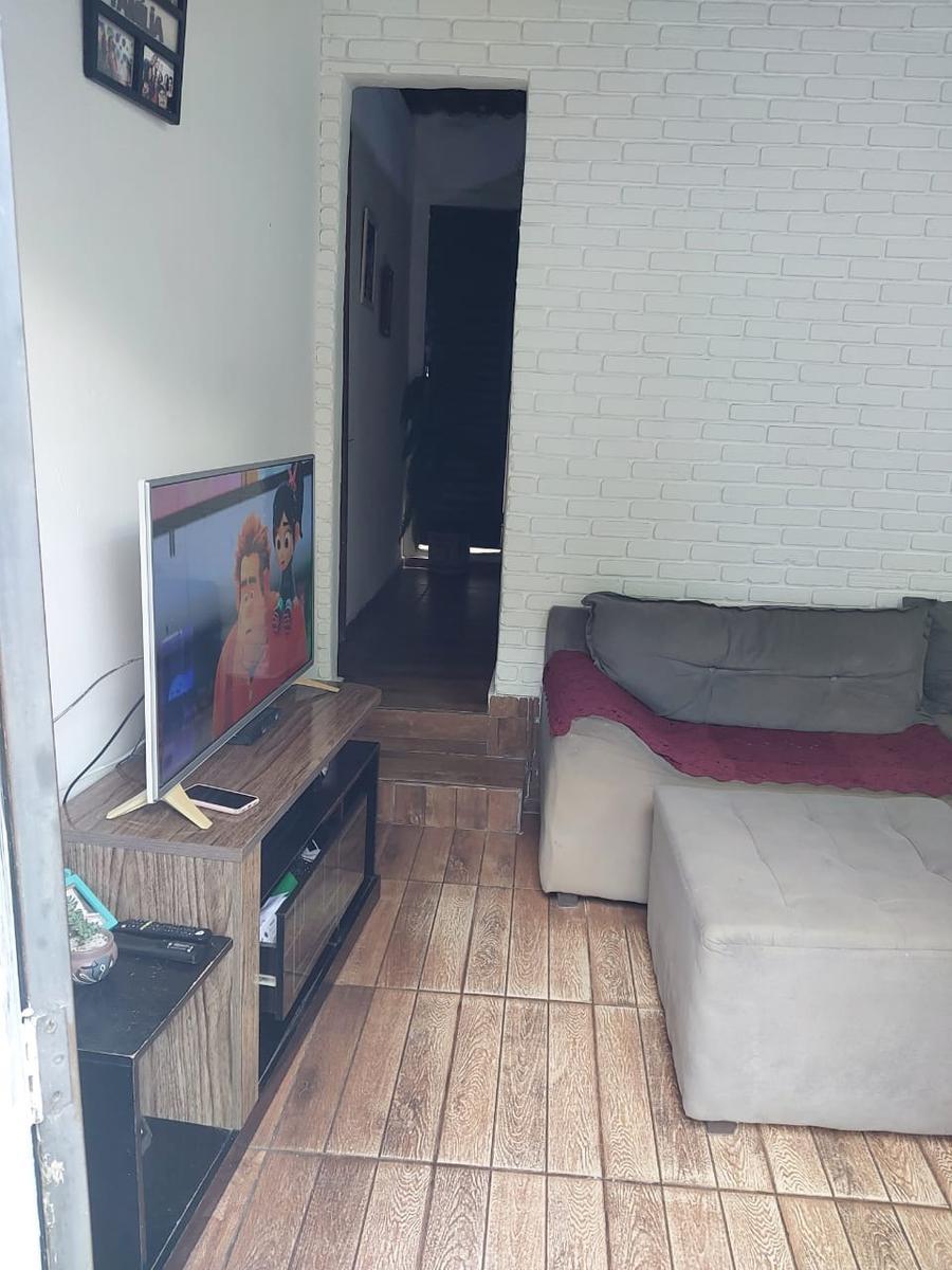 Casa em pintura, janelas em metalon, piso em cerâmica, 1 sala, 3 quartos sendo 1 suíte, 1 cozinha, área de tanque coberta, não tem garagem.