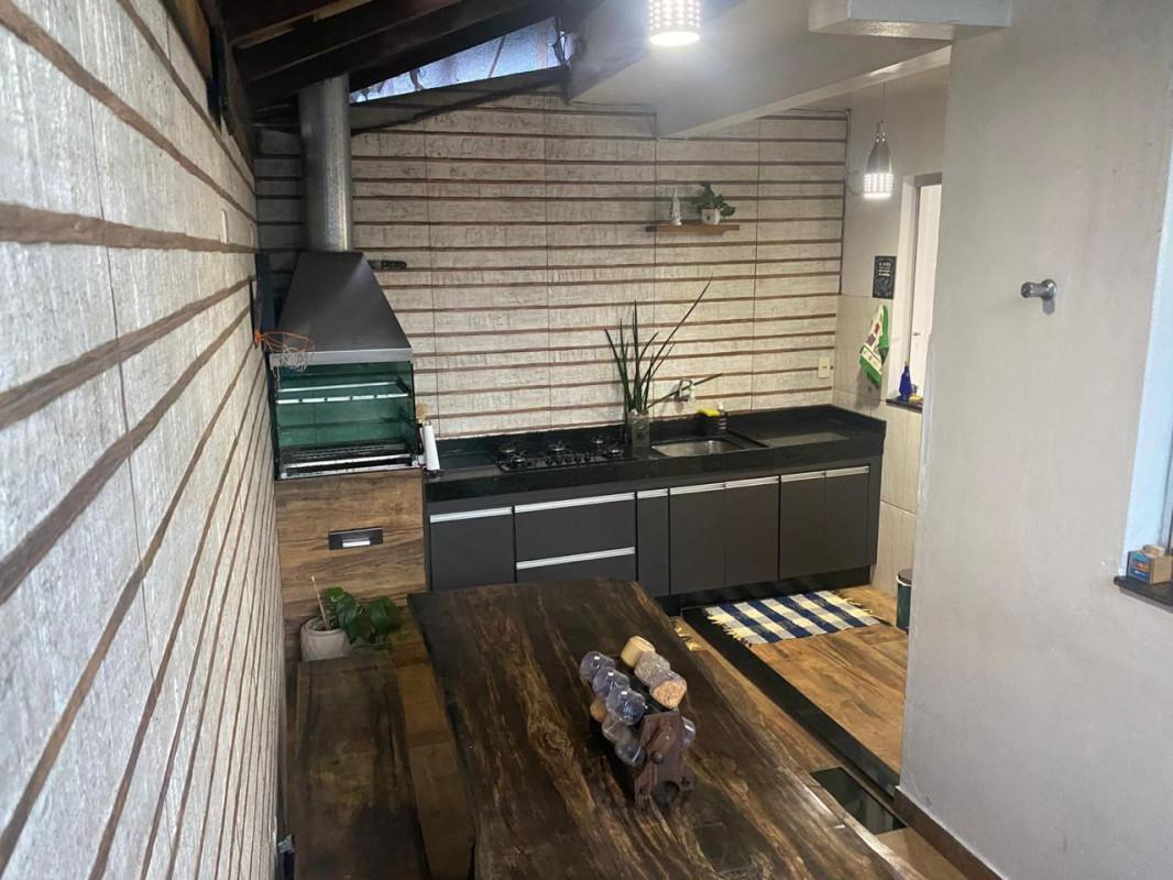 Pisos em porcelanato e cerâmica, rebaixamento em gesso, banheiro com box em vidro blindex, armário planejado sob pia, planejados nos quartos, cozinha e na varanda gourmet, bancada em granito, churrasqueira. Espaço para 02 vagas de garagem em linha demarcada. Casa Geminada com entrada individual em condomínio com 5 unidades.