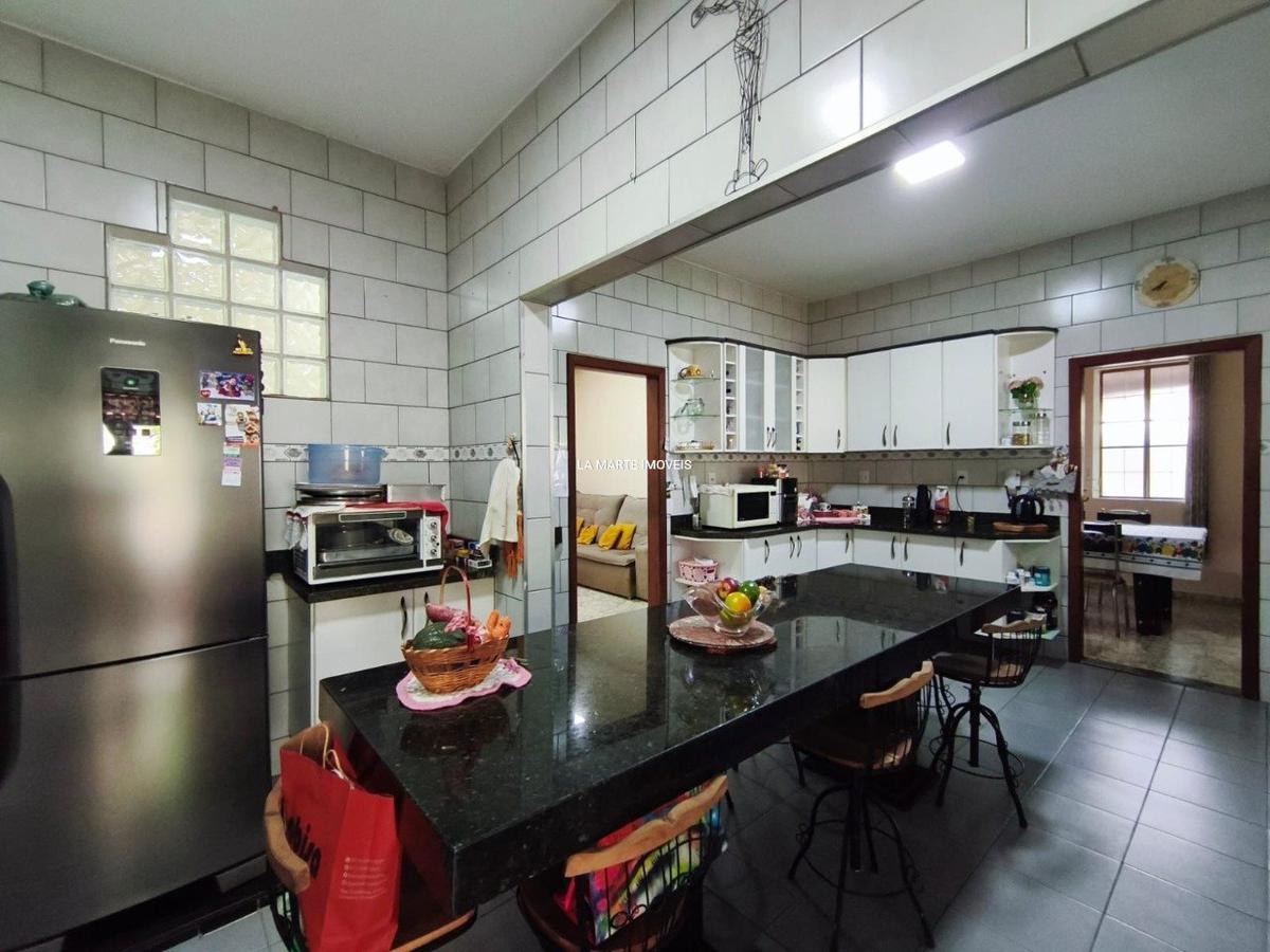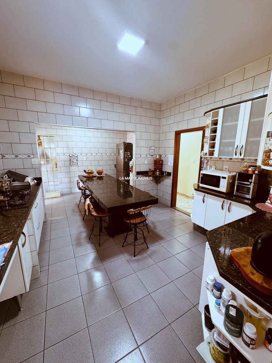 A cozinha é espaçosa, totalmente planejada, equipada com cooktop e uma imponente mesa em granito, para quem valoriza convivência e praticidade.