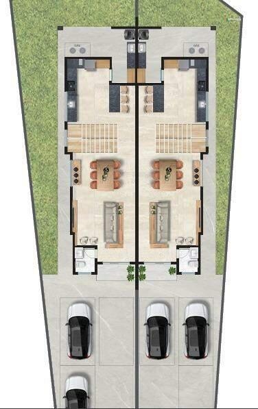 Encante-se com esta belíssima casa geminada, com 156m² de área construída, localizada na parte alta do bairro, oferecendo uma vista panorâmica incrível da cidade.