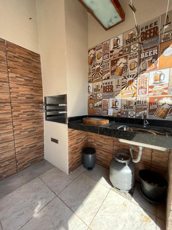 Área gourmet com bancada e churrasqueira