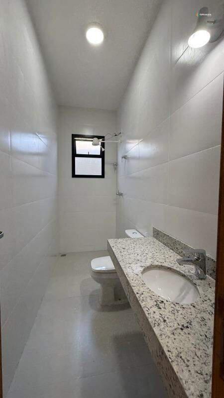 Banho social moderno, também com bancada em granito, oferecendo praticidade e estilo.