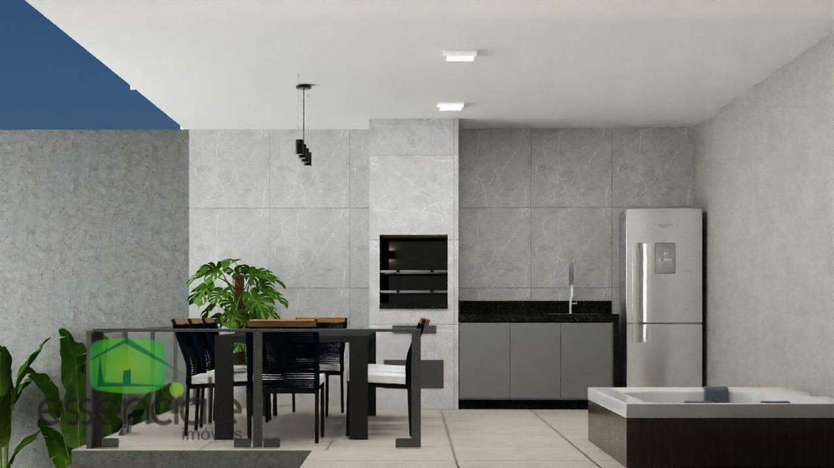No 1º pavimento, o imóvel conta com sala ampla, cozinha ampla com bancada em ilha, área gourmet e conceito aberto entre sala, cozinha e espaço gourmet, proporcionando integração total dos ambientes. Possui ainda 2 vagas de garagem descobertas.