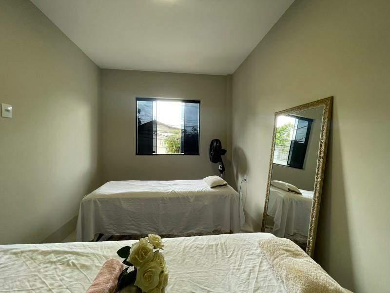3 quartos amplos com piso em porcelanato, sendo 1 suíte