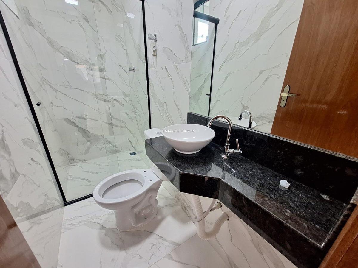 Casa de 3 quartos, sala, 02 banhos sociais, cozinha, área de serviço separada, área privativa grande, 02 vagas de garagem paralelas cobertas (pilotis),