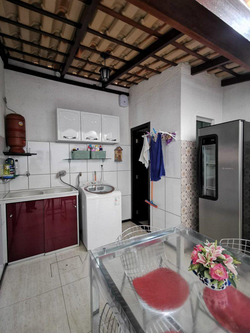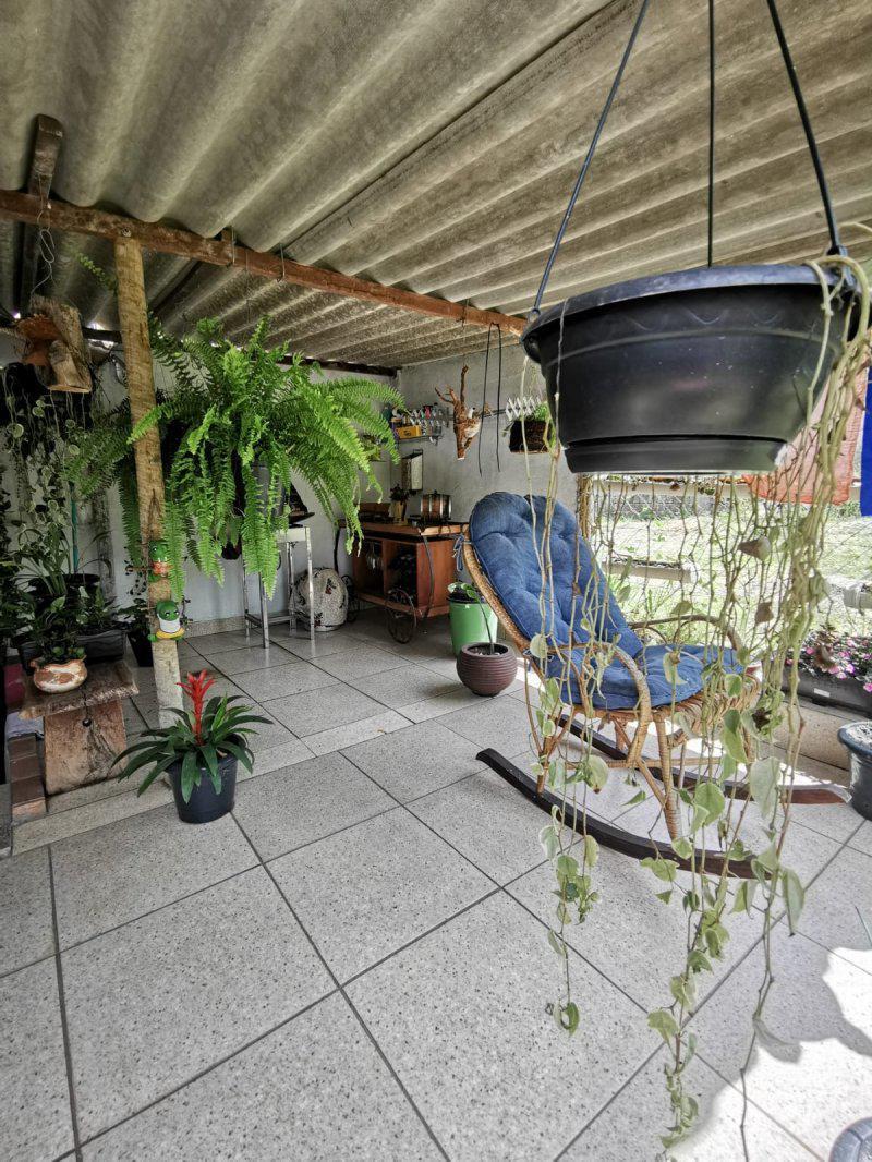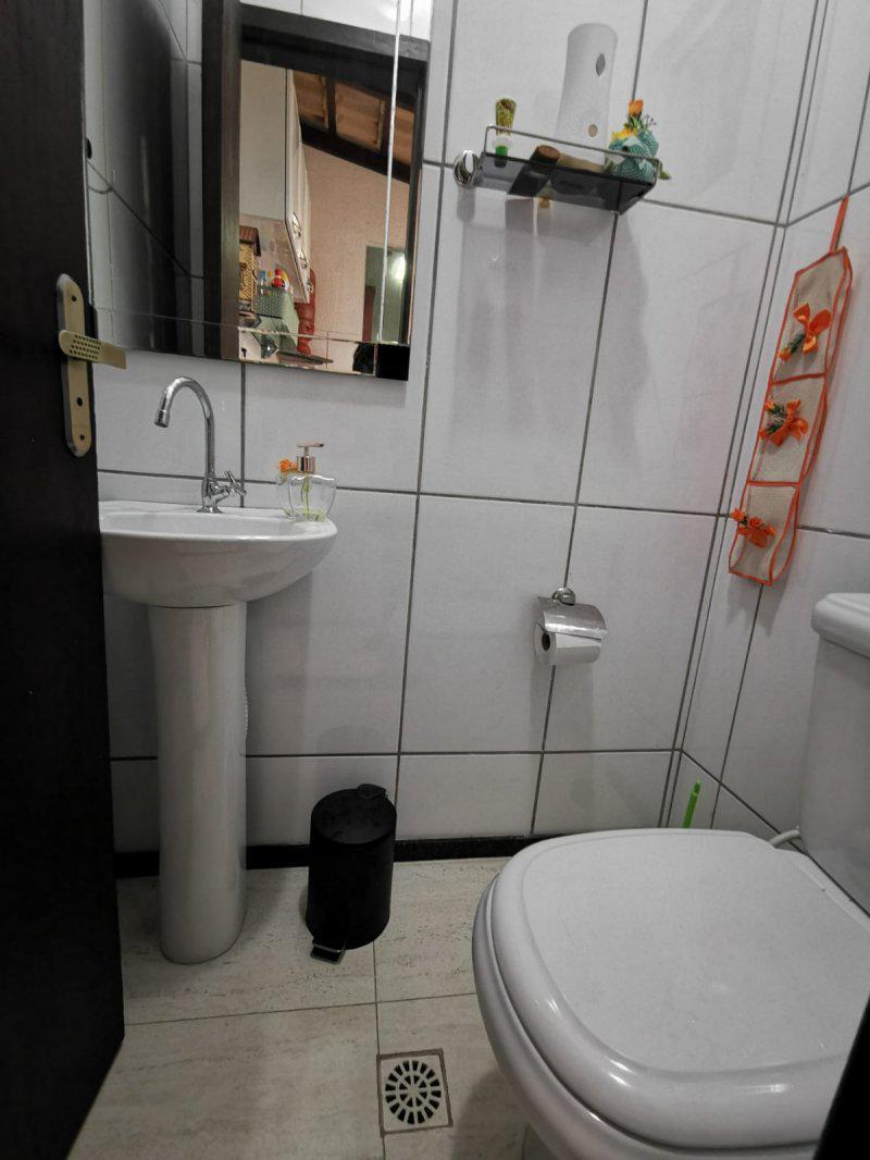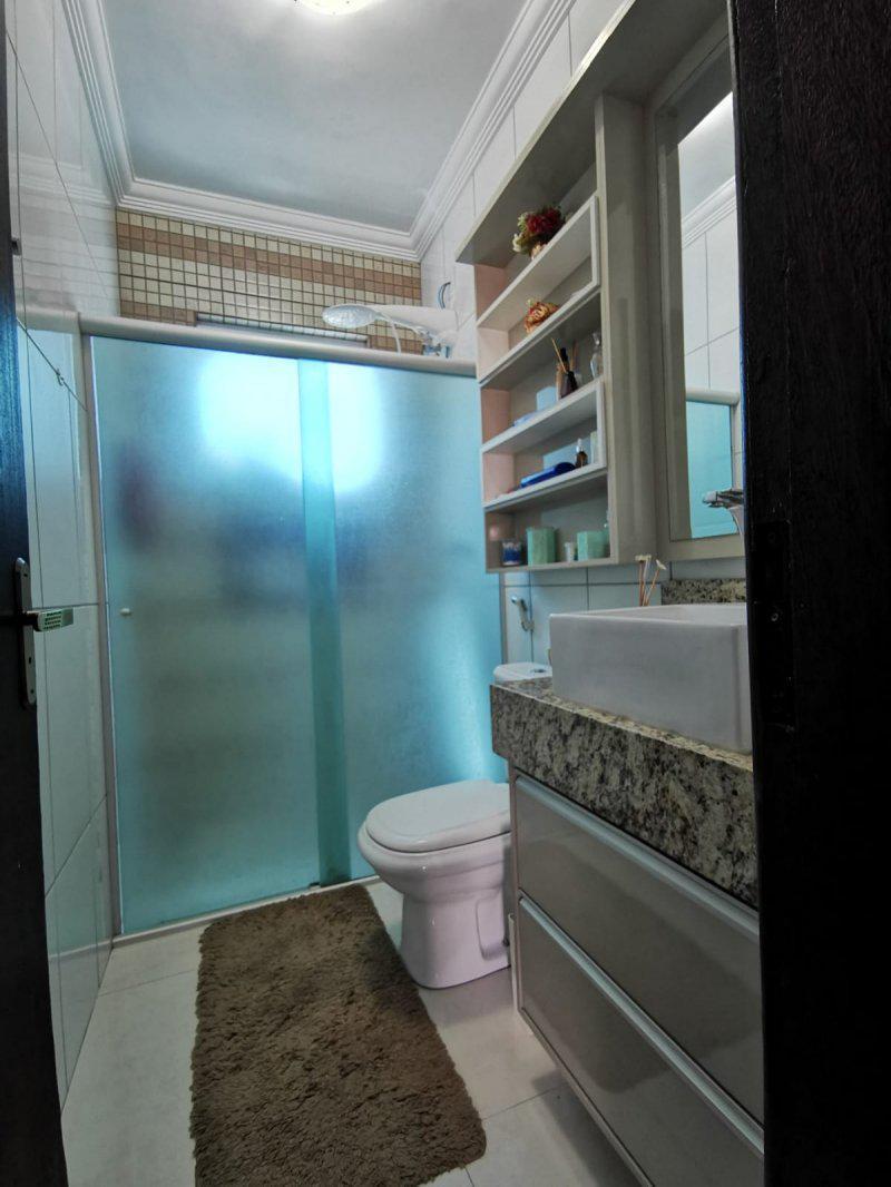Banho social amplo com blindex. Lavabo, area de serviço, area gourmet com churrasqueira. Area verde no fundo com jardim.