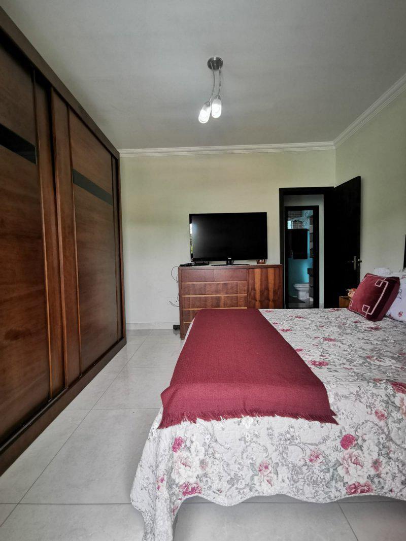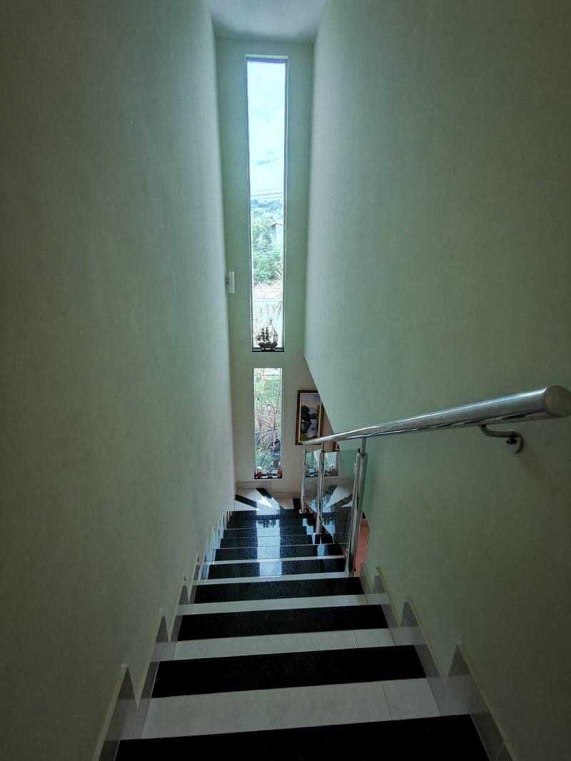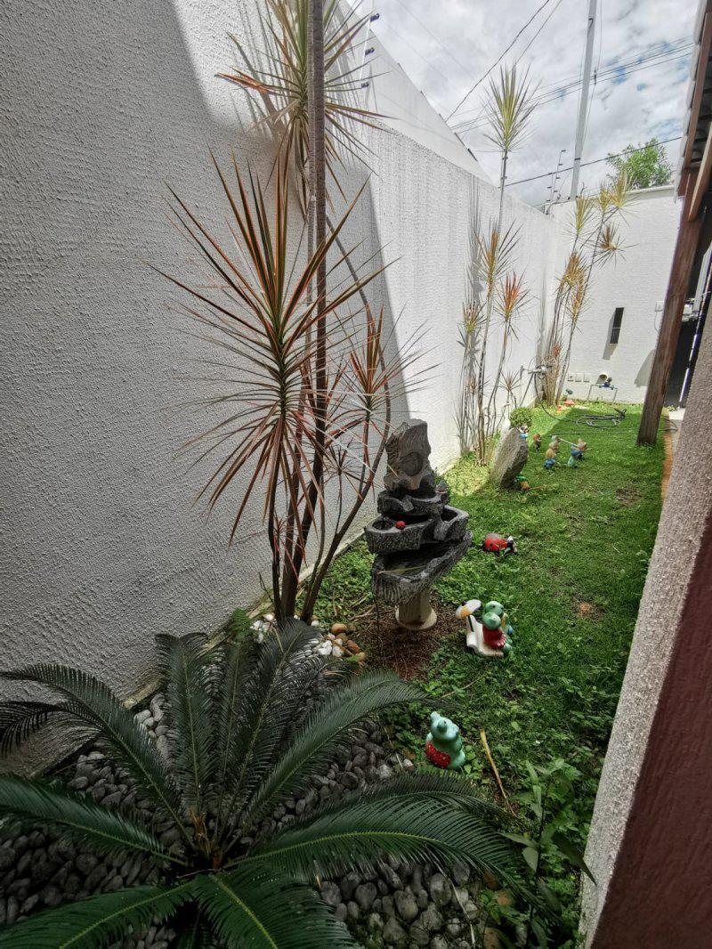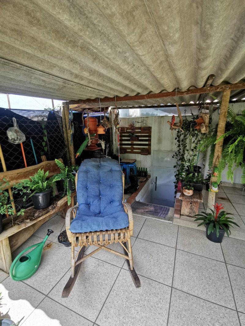 Banho social amplo com blindex. Lavabo, area de serviço, area gourmet com churrasqueira. Area verde no fundo com jardim.