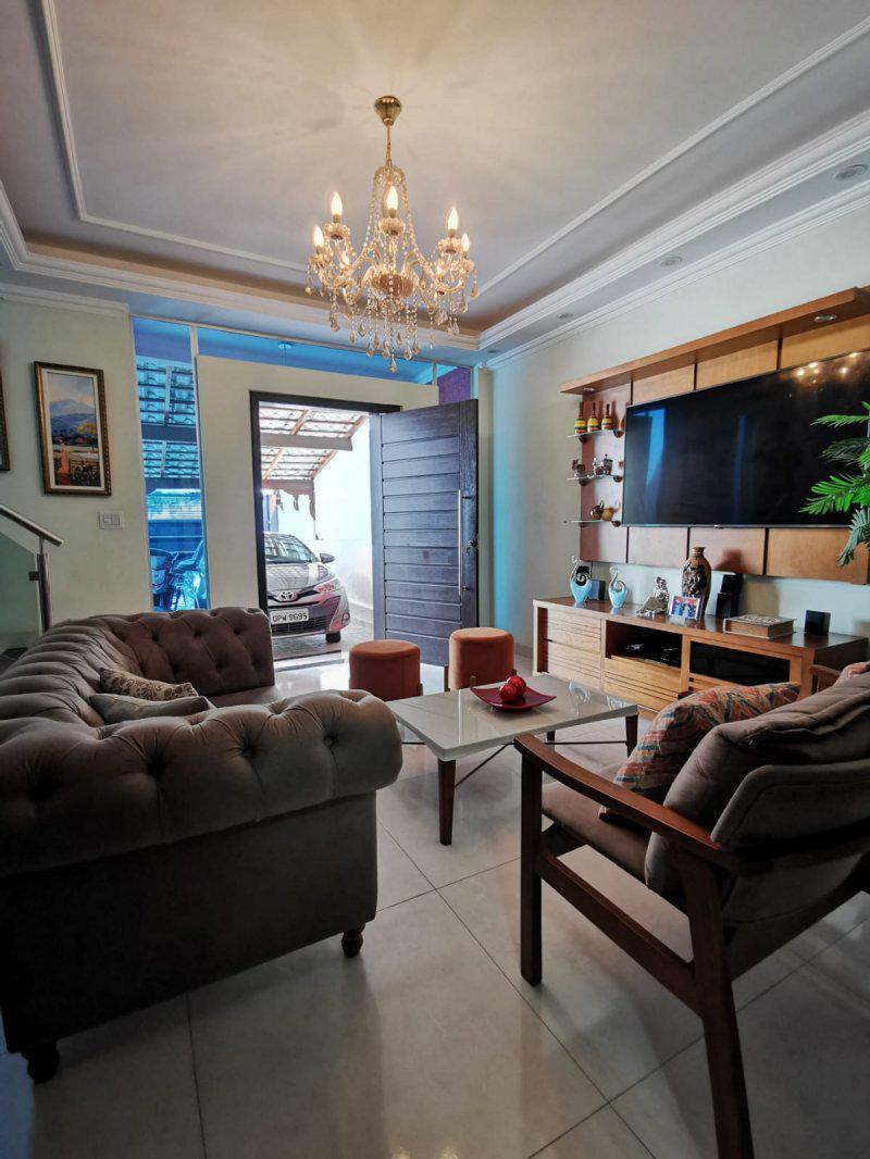 Sala ampla para dois ambientes, com rebaixamento de teto e lampadas de croica.