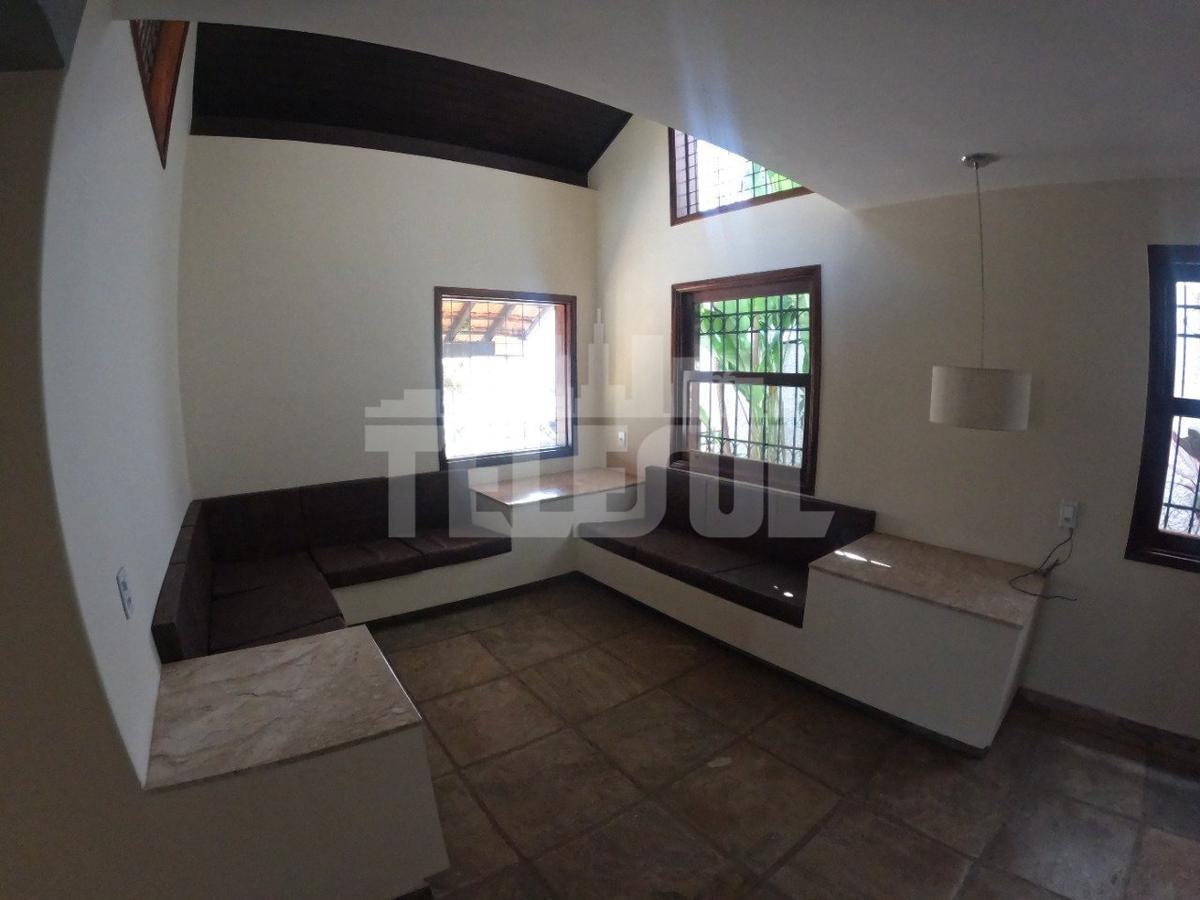 A casa principal é rodeada por um belo projeto de jardinagem e dispõe de um quintal amplo e bem cuidado, lavanderia, quarto de despejo e banheiro externo. Internamente, possui uma ótima cozinha, ampla sala com estilo único, três dormitórios espaçosos e banheiros bem distribuídos, que garantem conforto e funcionalidade.
