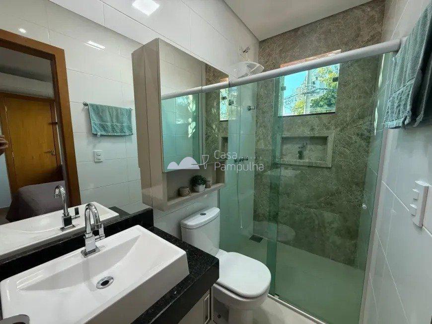 Banheiro social com bancada em granito e box em blindex
