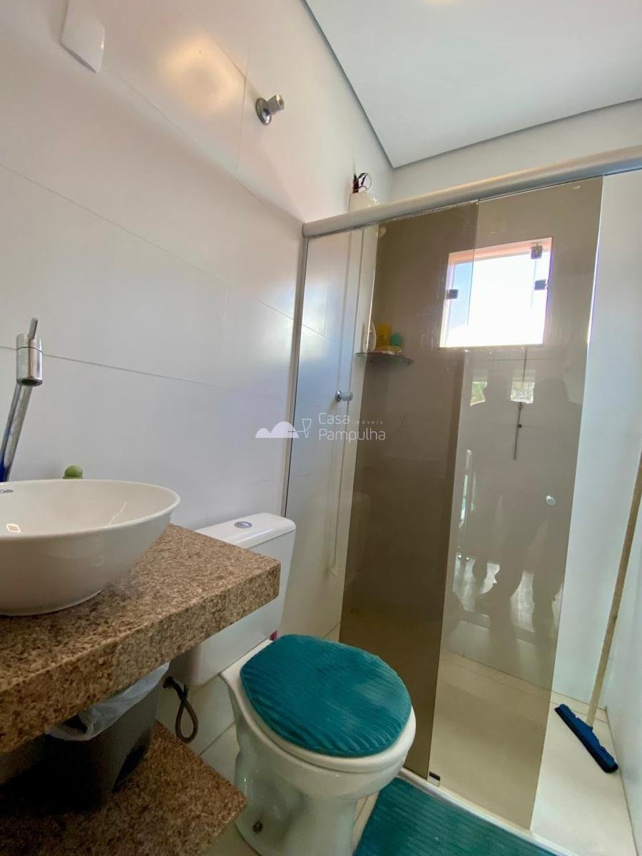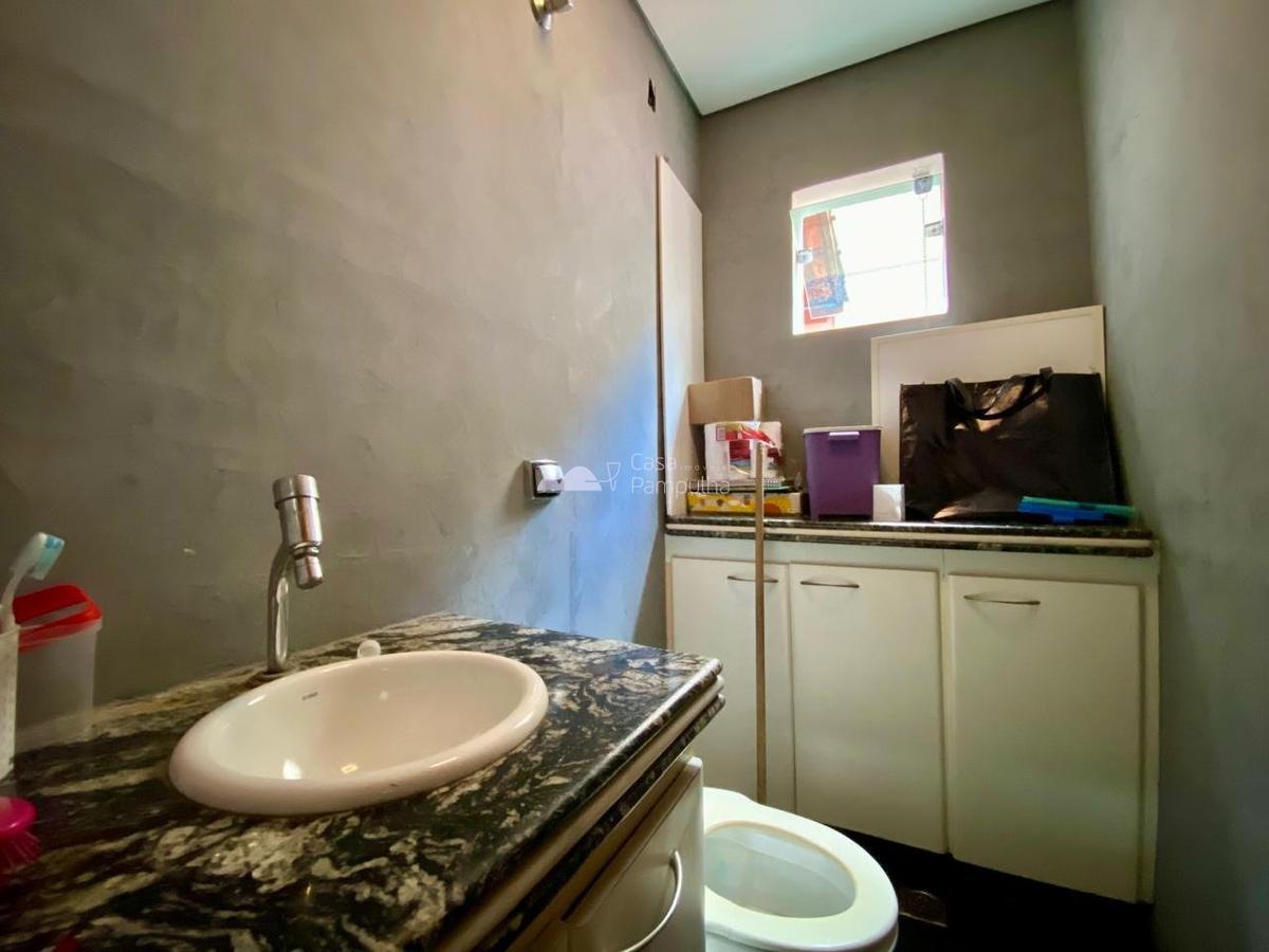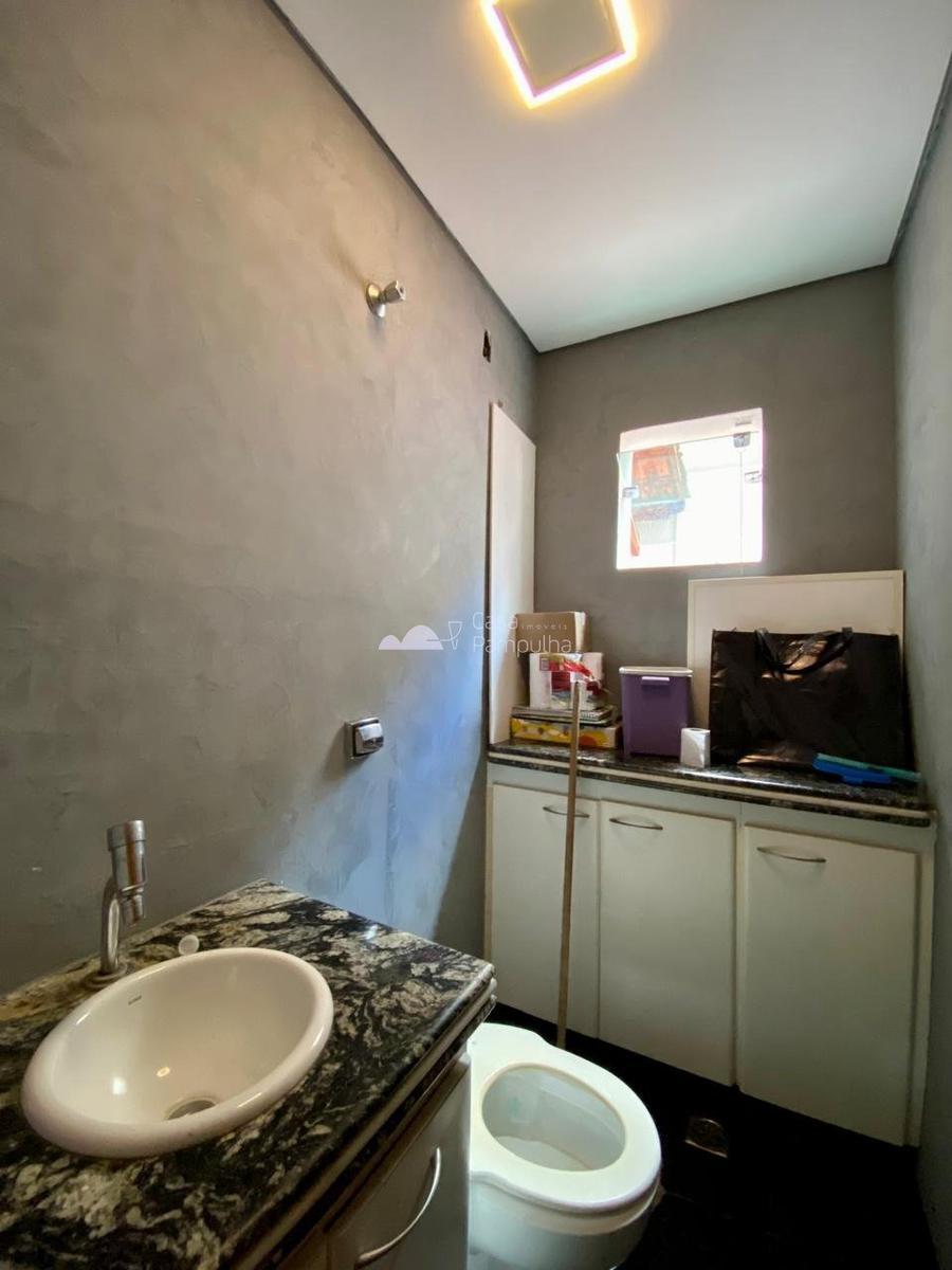 - banheiro social com bancada em granito e armario;