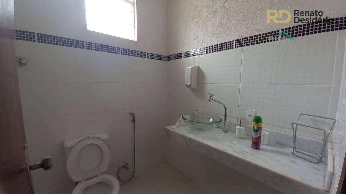 Galpão de 80 metros quadrados com 2 banheiros e mesanino.