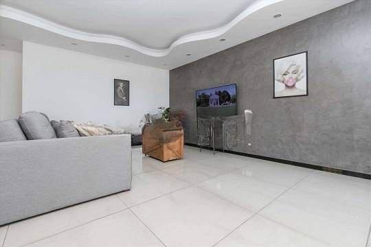 -Sala 2 ambientes com piso em porcelanato, rebaixamento de teto em gesso com iluminação indireta