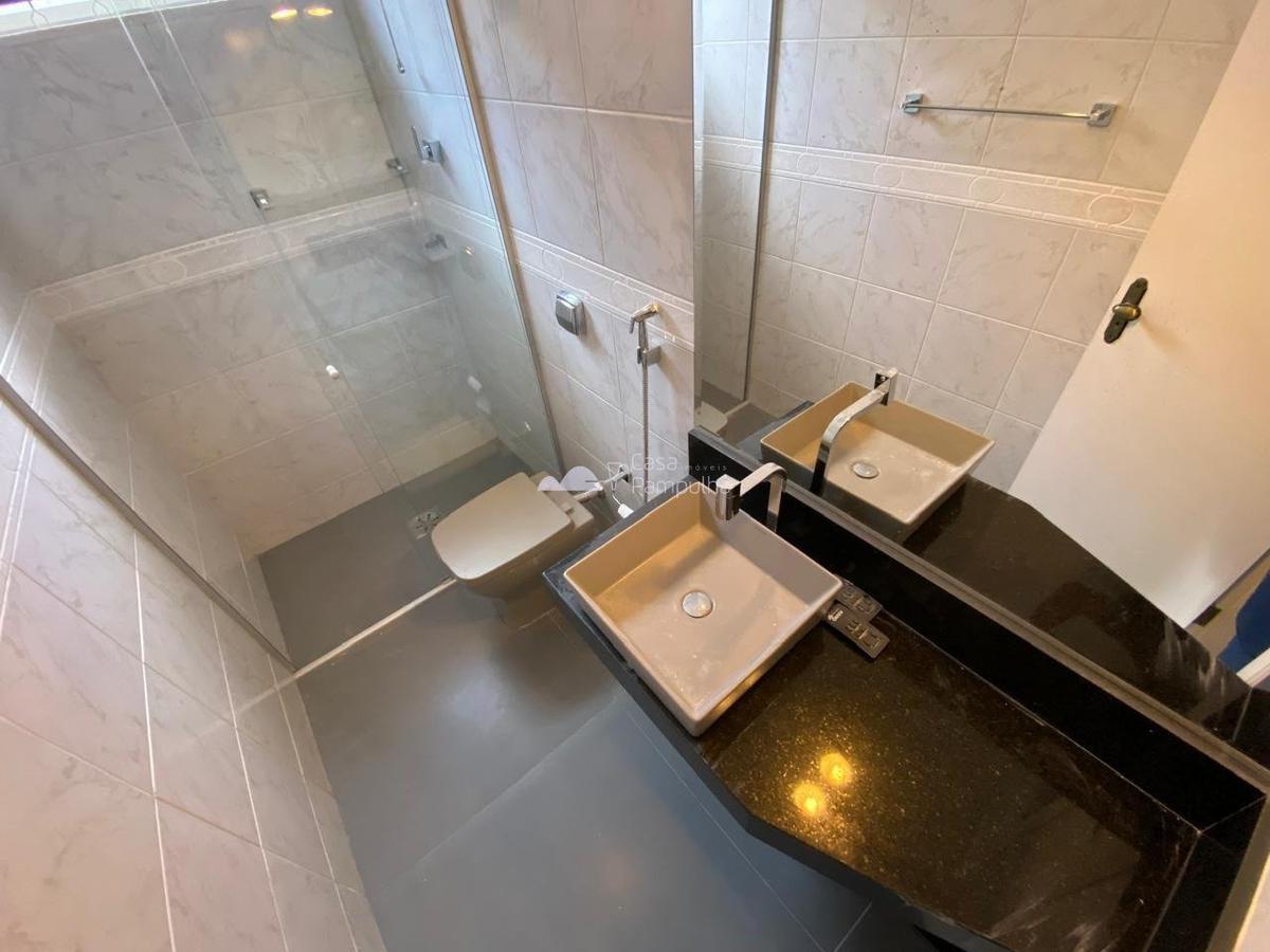 - 01 banheiro social com bancadas em granito e box em blindex e espelhos;