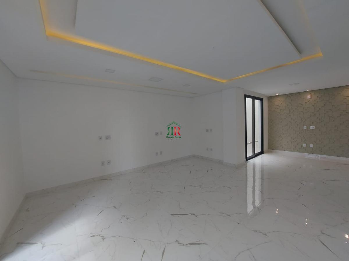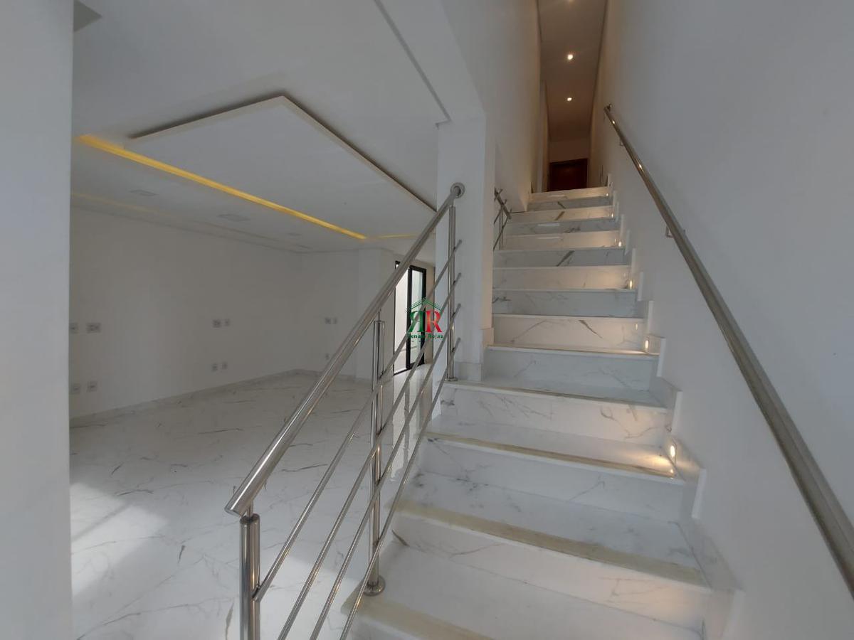 Casa geminada triplex, composta por : sala para 2 ambientes varanda lavenidaabo cozinha ampla com bancada de granito area de servico 3 quartos sendo 2 suites simples e 1 suite master pre disposicao para ar condicionado area gourmet com churrasqueira e bancada em granito area externa rebaixamento em gesso em todos os ambientes parede dupla dividindo as casas isolamento acústico lote 180 m2 area construída 290m2