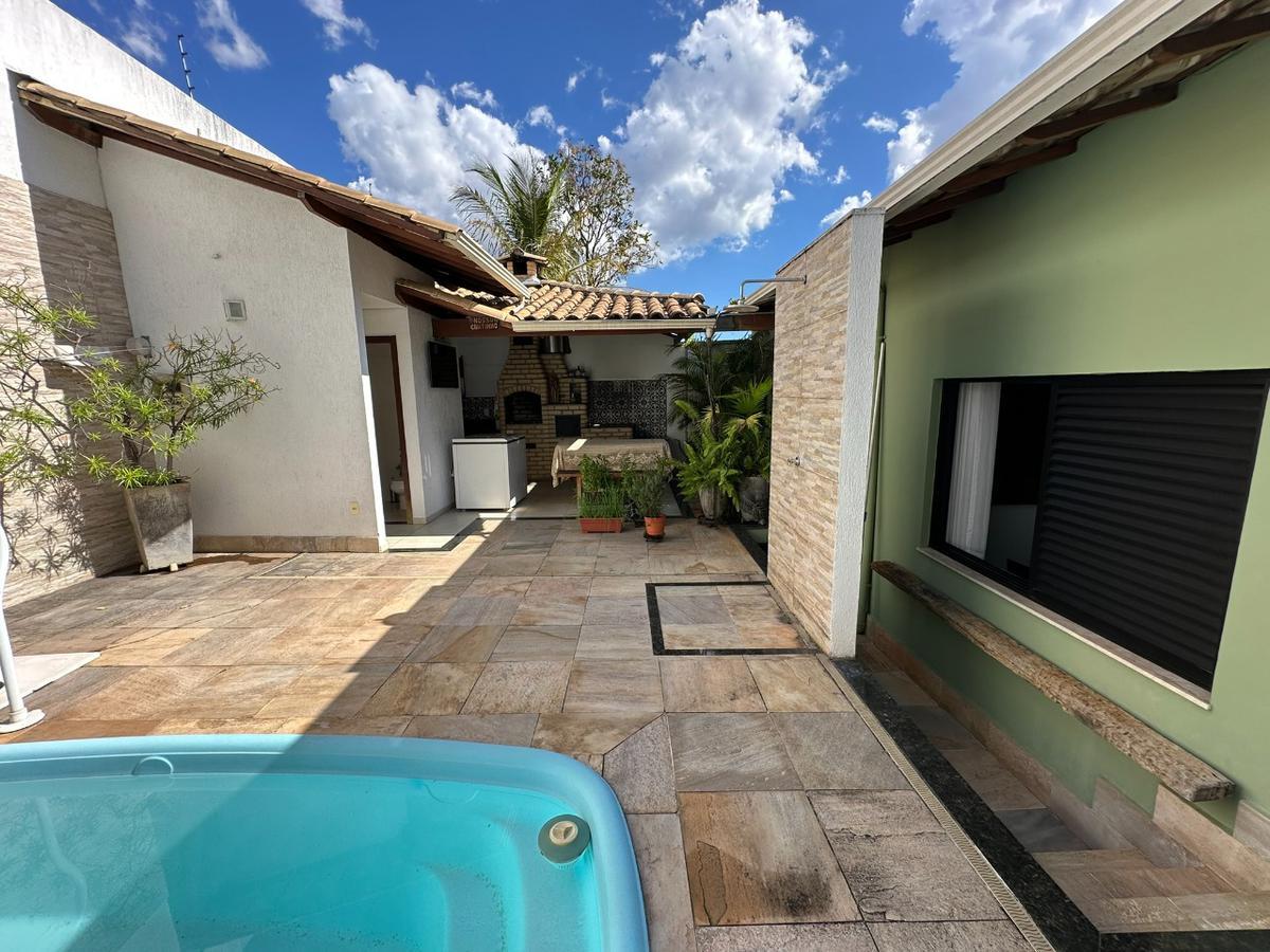 Casa toda murada, com telhado colonial, jardim na entrada e na lateral, além de um jardim de inverno interno. Possui varanda com fechamento em blindex e piso é em cerâmica.