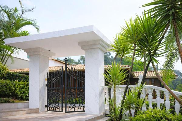 2º Pavimento: Escadaria em granito no hall de entrada, com corrimão dourado e grades em prata em estilo francês, dando acesso à garagem. Despensa. Lavanderia completa, com quarto e banheiro para funcionários, equipada com instalações sanitárias e de cozinha com peças Deca. Garagem coberta para 02 veículos.