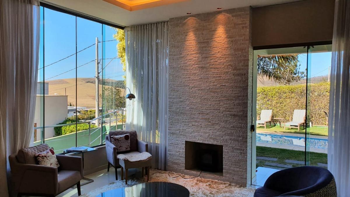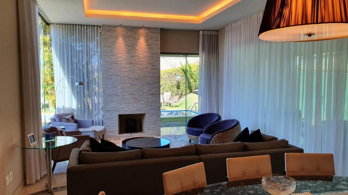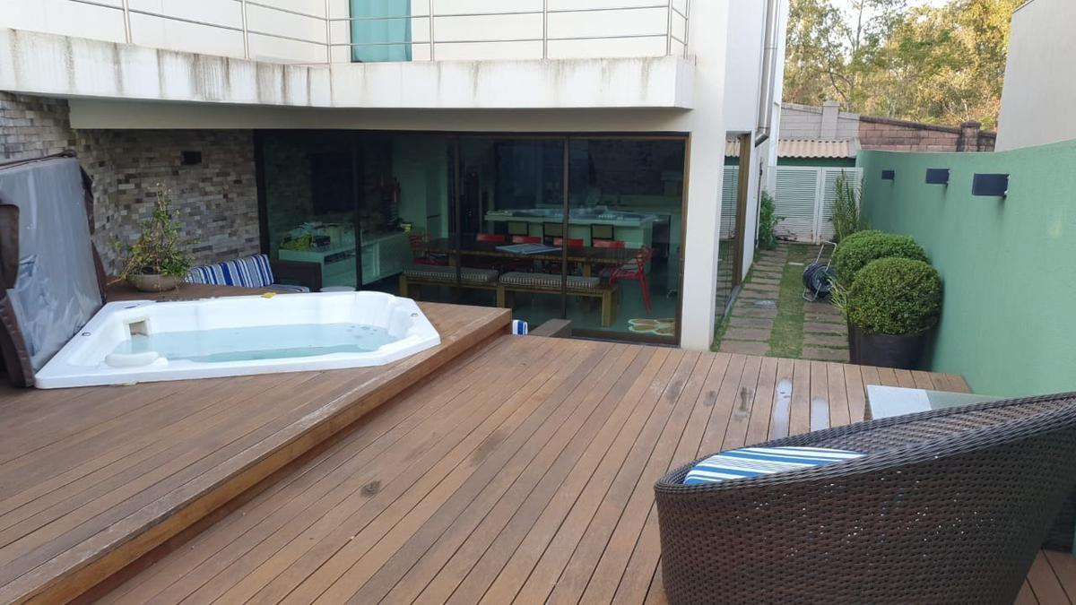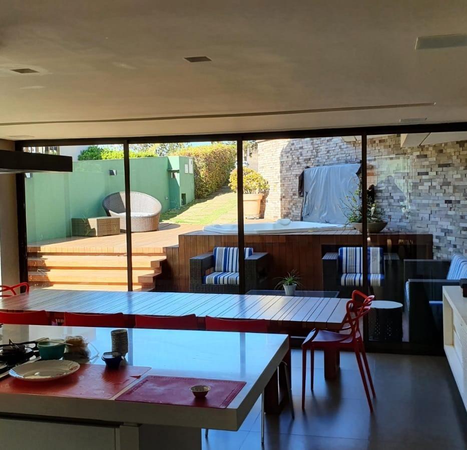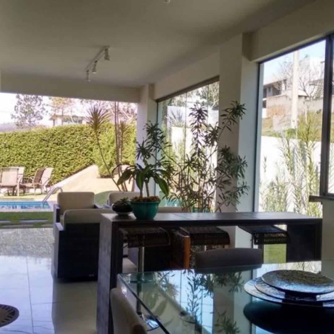 Ótima oportunidade! Casa mobiliada com 4 quartos, sendo 1 suíte máster com closet e entrada, 1 suíte independente, 2 semi-suítes, sala para 2 ambientes, cozinha, despensa, sauna, hidromassagem, sala externa, sala de chá, sala de tv, piscina, home office, lavanderia, quarto de oficina, sala de cinema. A casa conta com um total de 5 banheiros, espaço gourmet completo com churrasqueira e spa totalmente separado dos demais cômodos, toda a casa com armários de primeira linha, canil espaçoso e garagem para 2 carros.