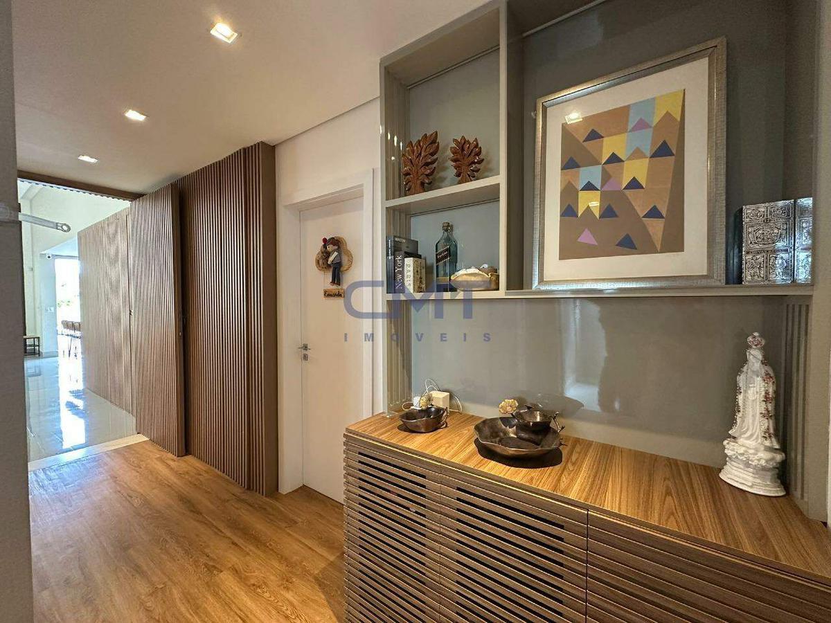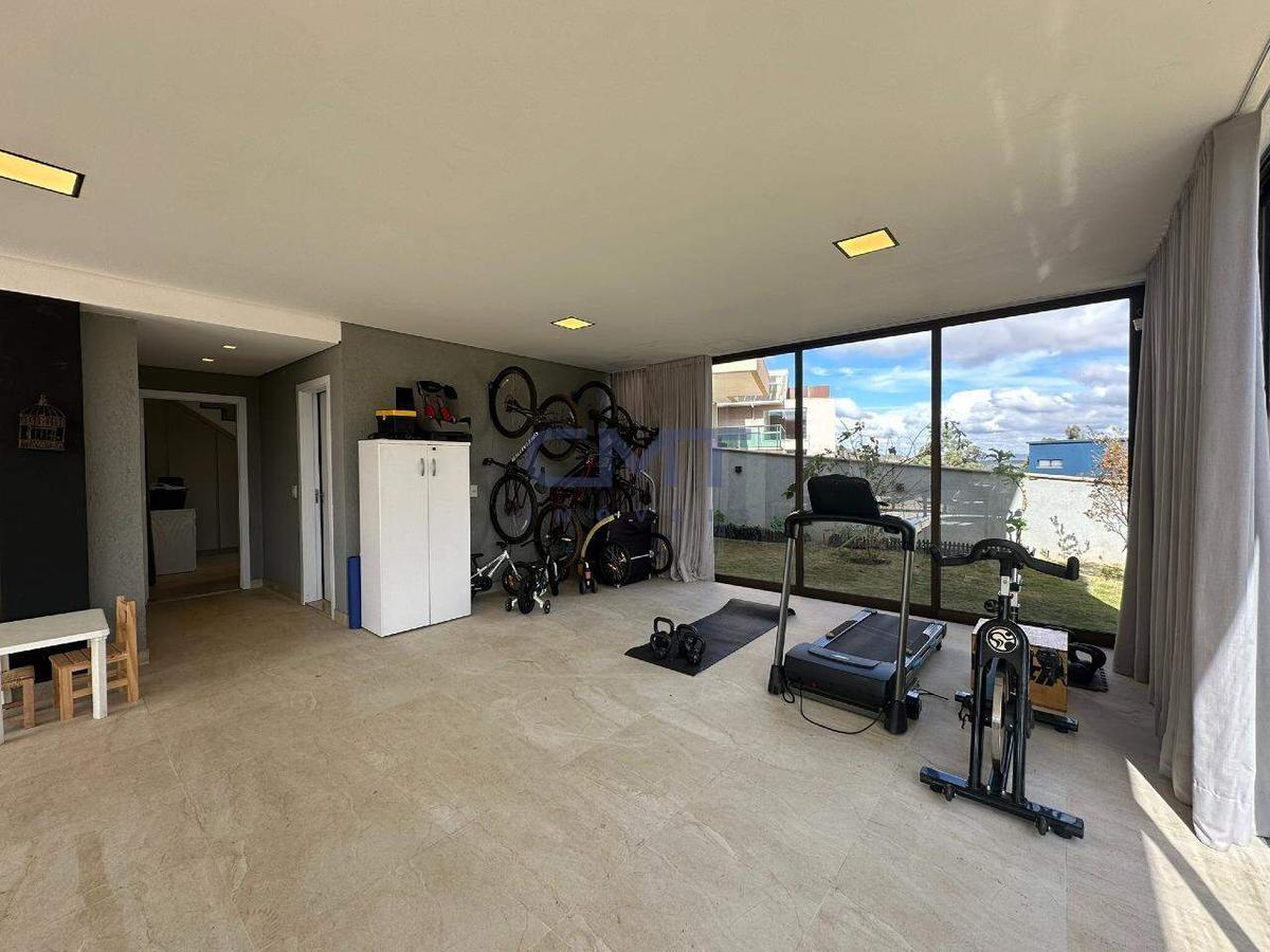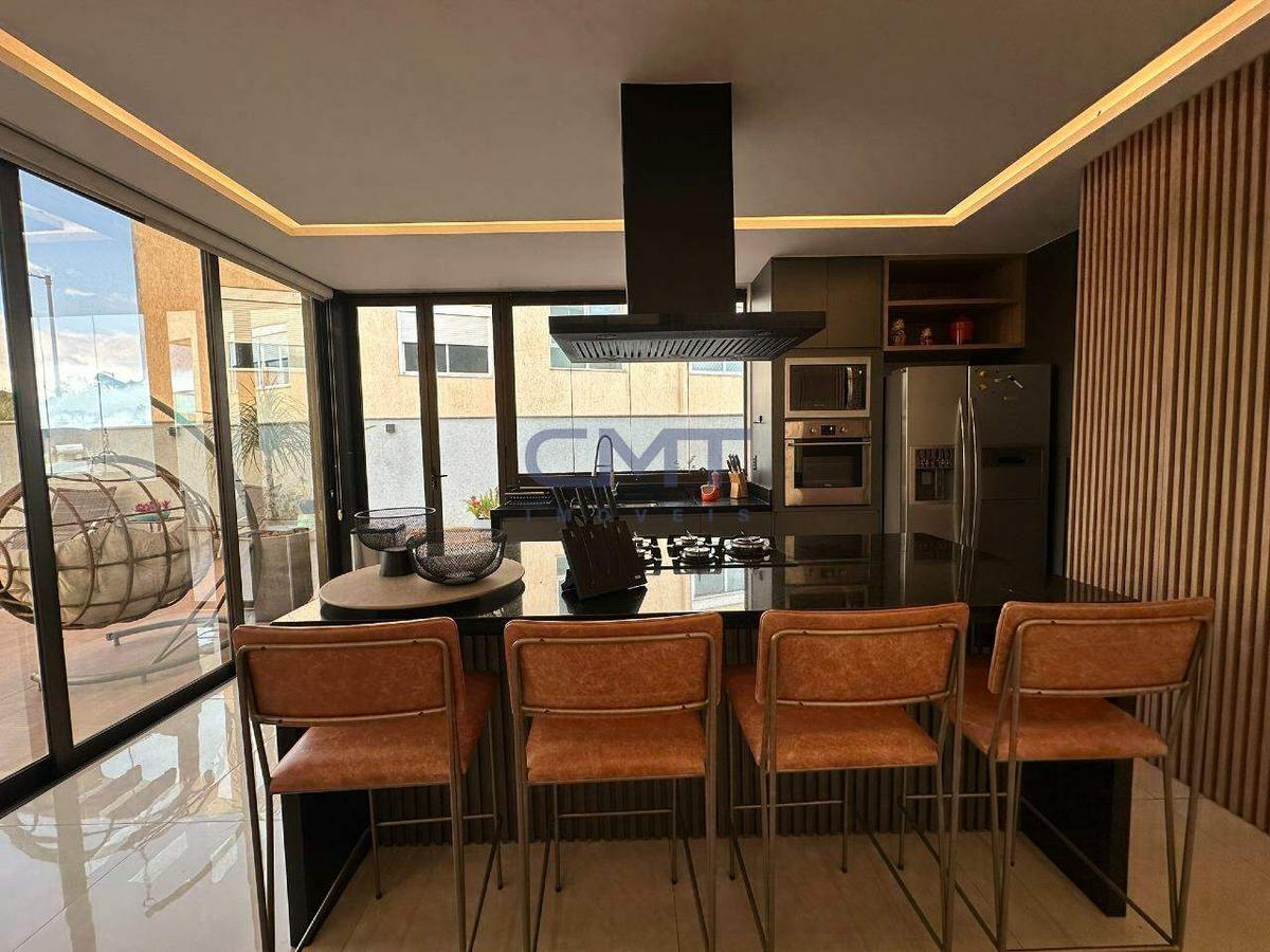 Sala espaçosa, com pé direito duplo integrada com a cozinha, com uma ilha gourmet que conecta toda a casa. Iluminação planejada em teto de gesso, piso em porcelanato de extremo bom gosto. Conta com dois lavabos, sendo um interno e um externo. Por toda a sala e cozinha temos fechamentos em vidro que dão acesso à área externa, que conta com piscina aquecida, área gourmet, churrasqueira e uma vista incrível para as montanhas.