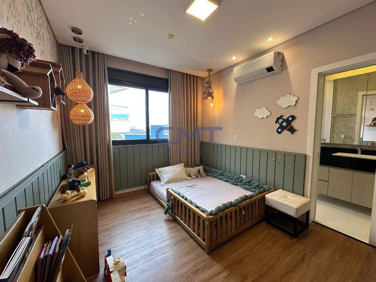 São 4 quartos sendo 3 suítes espaçosas e mais 1 quarto com banheiro, trazendo toda privacidade para acomodar a sua família. Todos os quartos e banheiros contam com armários planejados, e todas as janelas com persianas elétricas automatizadas, gerando conforto. Ar condicionado quente/frio em todos os quartos.